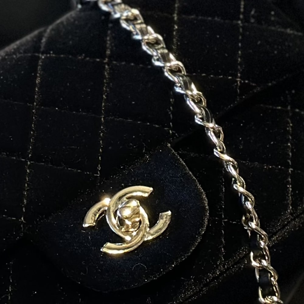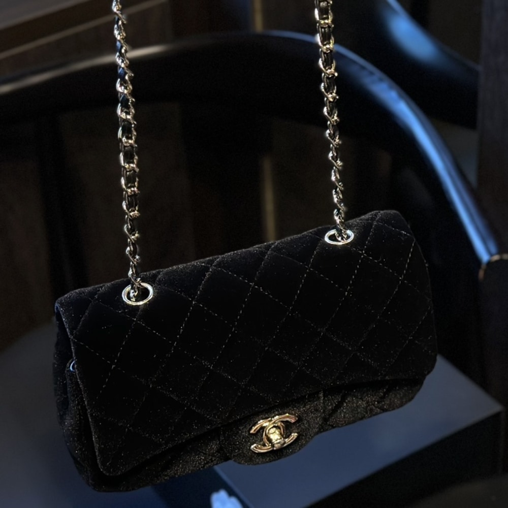 Chanel Velvet Pearl Crush Mini Flap Bag Black 20Cm