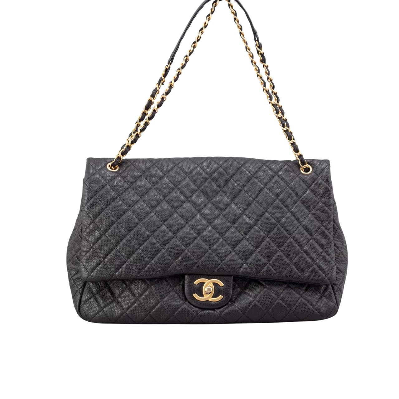 Chanel Xxl Airline Classic Travel Flap Bag Caviar Leather Black Gold Hardware 46Cm