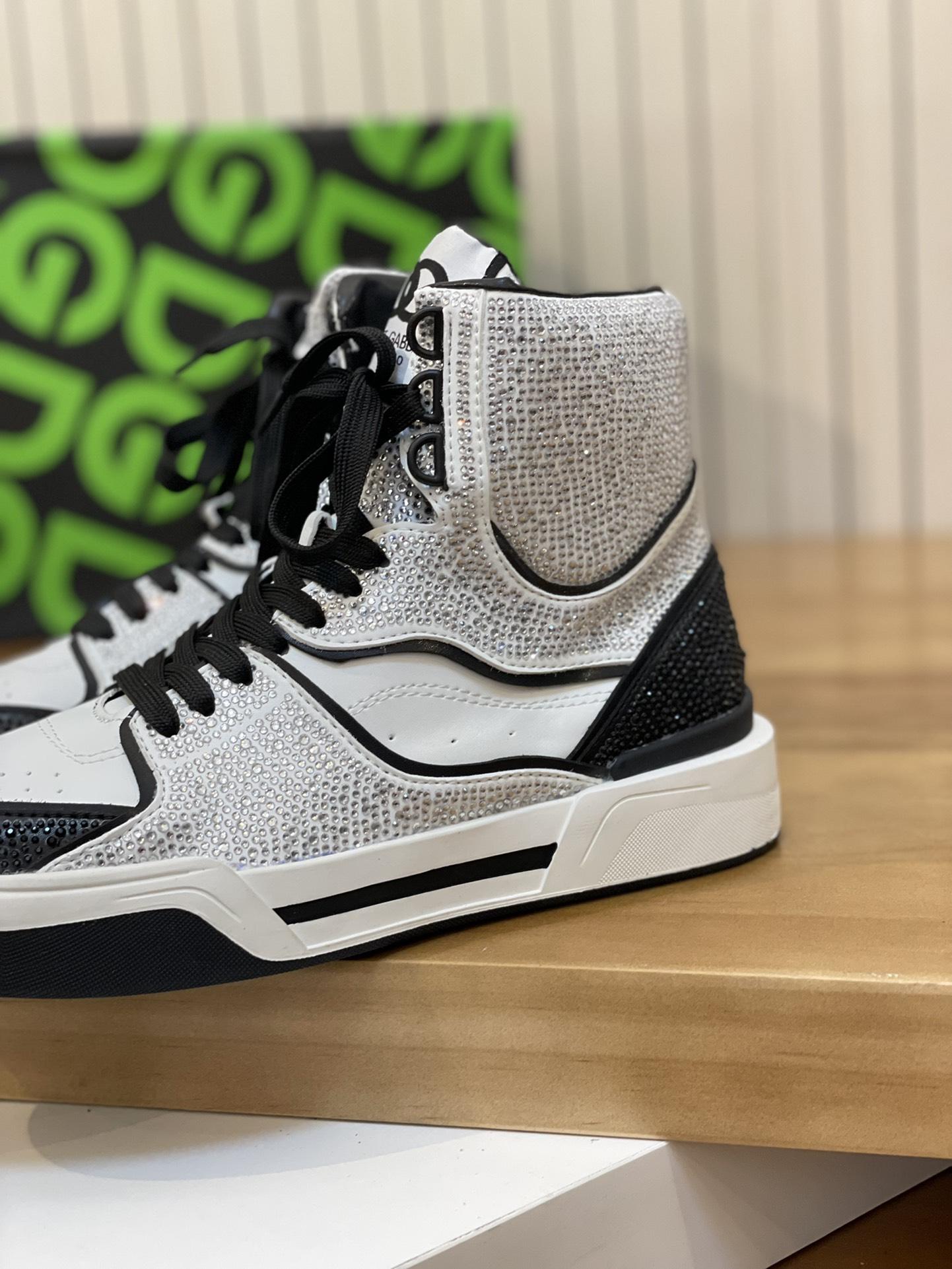 DOLCE & GABBANA Calfskin New Roma high-top sneakers with fusible rhinestones