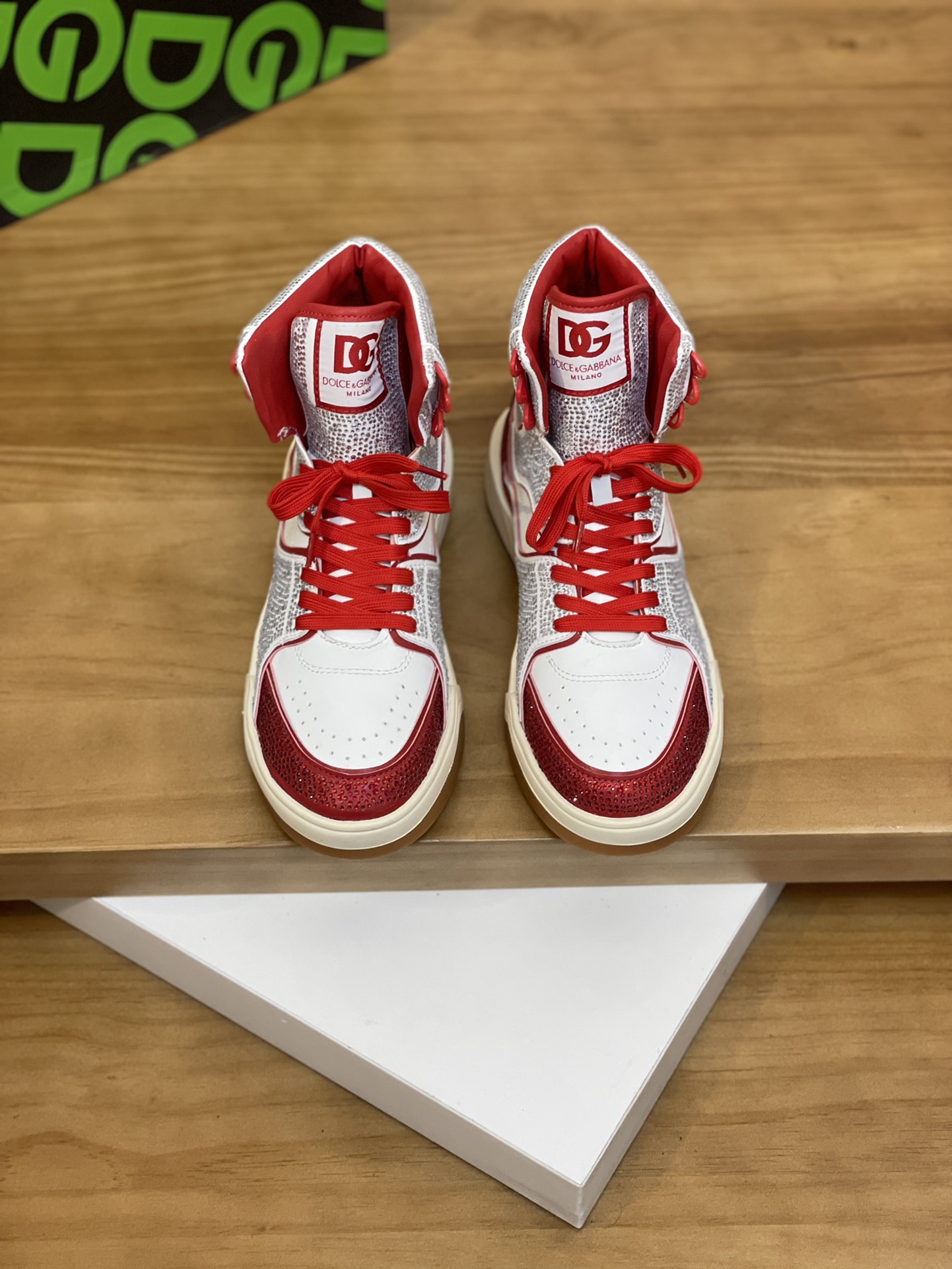 DOLCE & GABBANA Calfskin New Roma high-top sneakers with fusible rhinestones