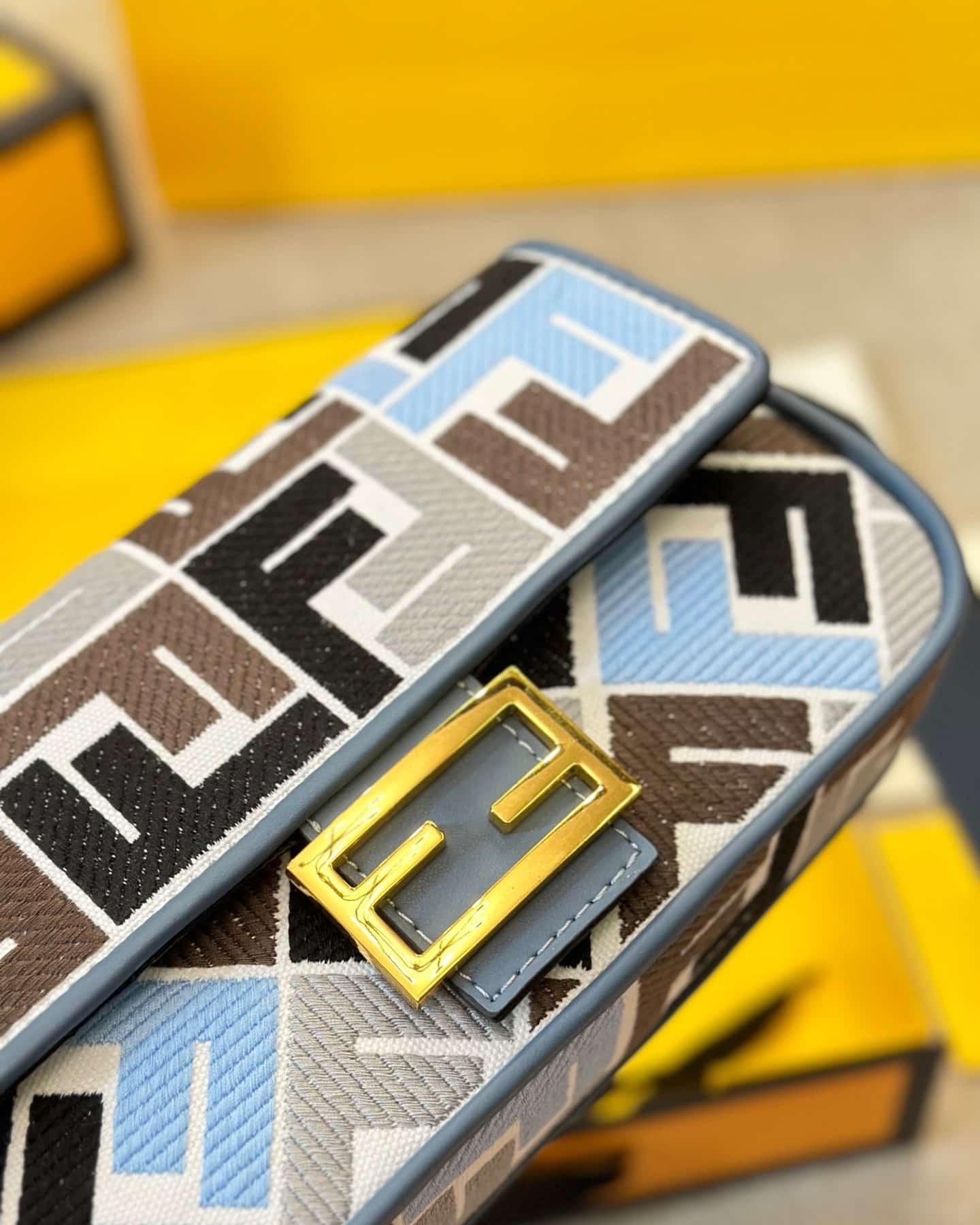 - Finished with milk white leather trim and embellished with an FF clasp.
