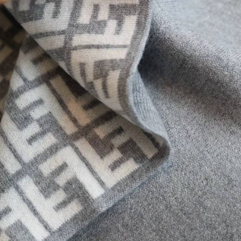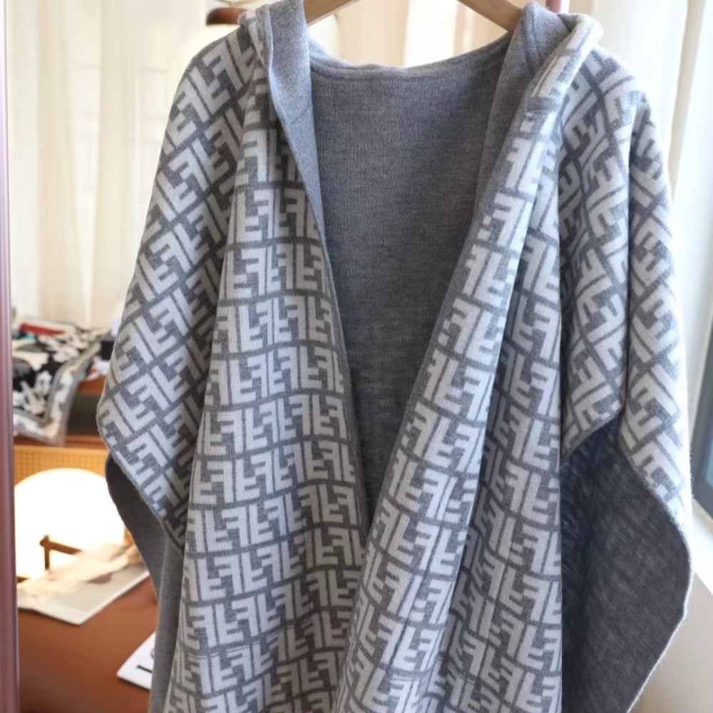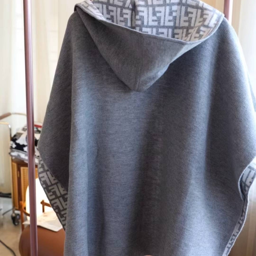 Fendi Ff Poncho Gray And White Wool And Cashmere