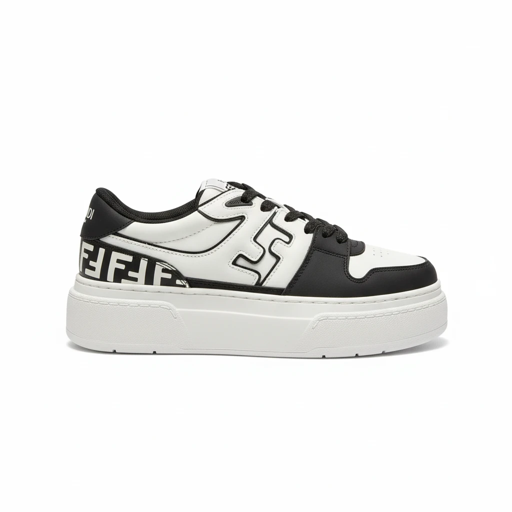 FENDI Match Canvas and suede platform low-tops Sneakers