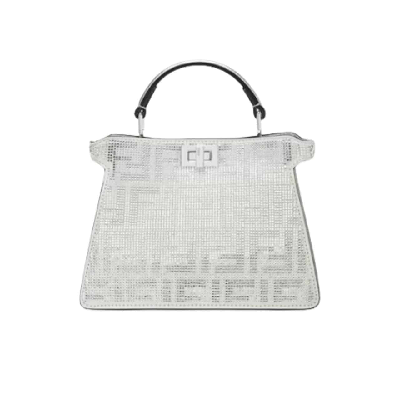 Fendi Peekaboo Iseeu Petite Silver Leather Bag With Crystal Ff Motif 21Cm 8Bn335Apkff1Jsu
