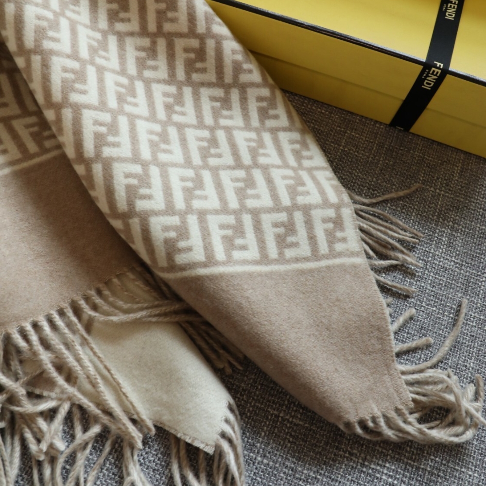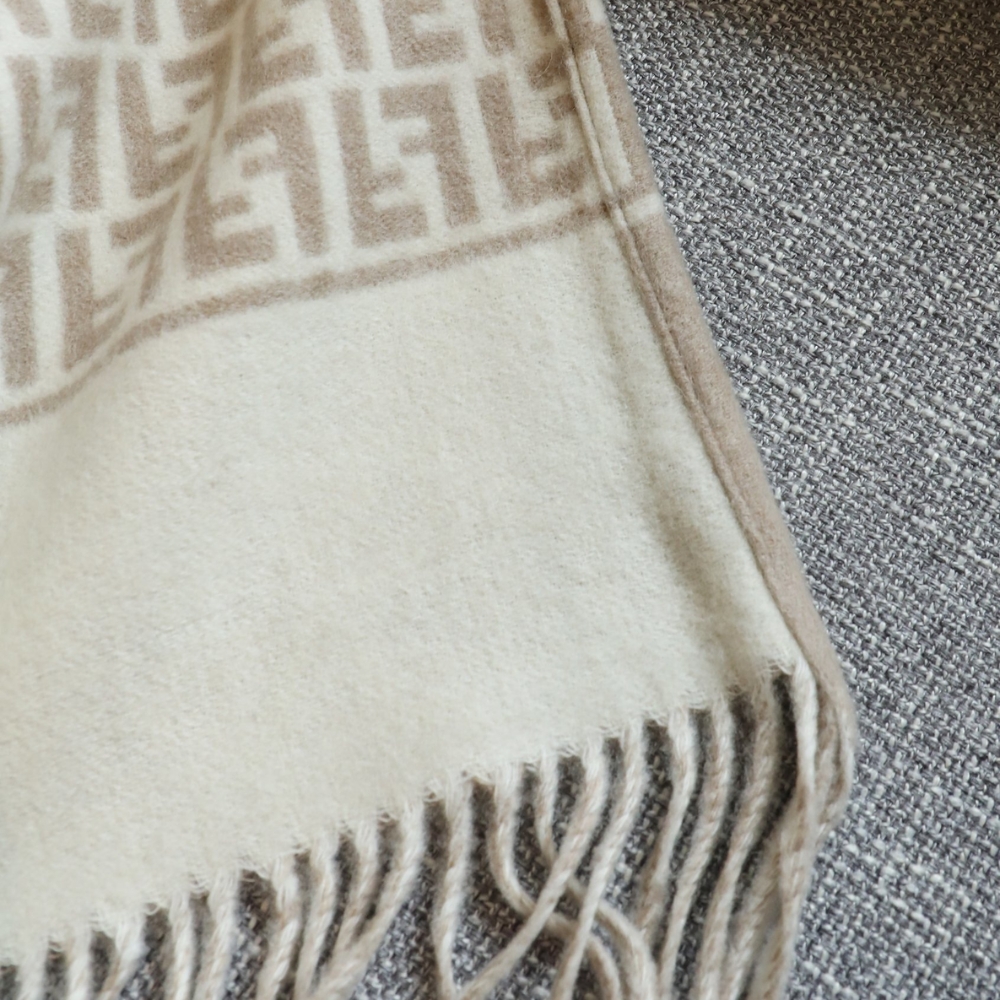 - Fendi Roma logo on a contrasting colour background with fringes