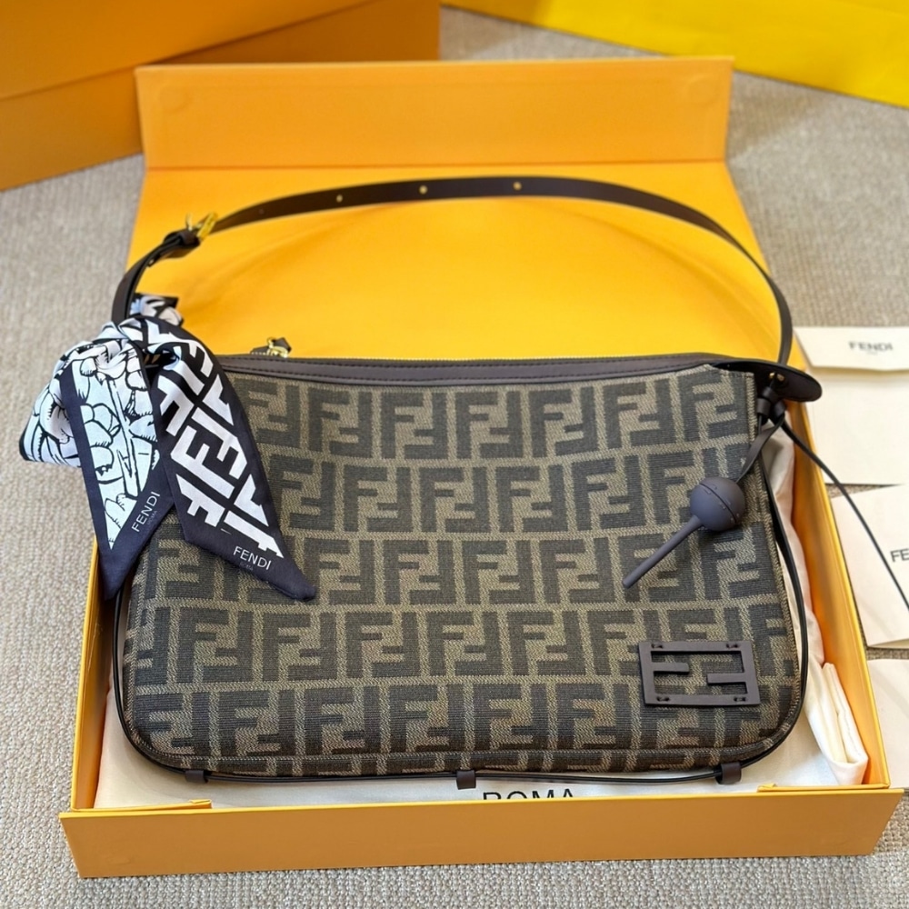 Fendi Simply Fendi Medium Brown Ff Jacquard Fabric Bag 25Cm 8Br829Afpmf1Gl7