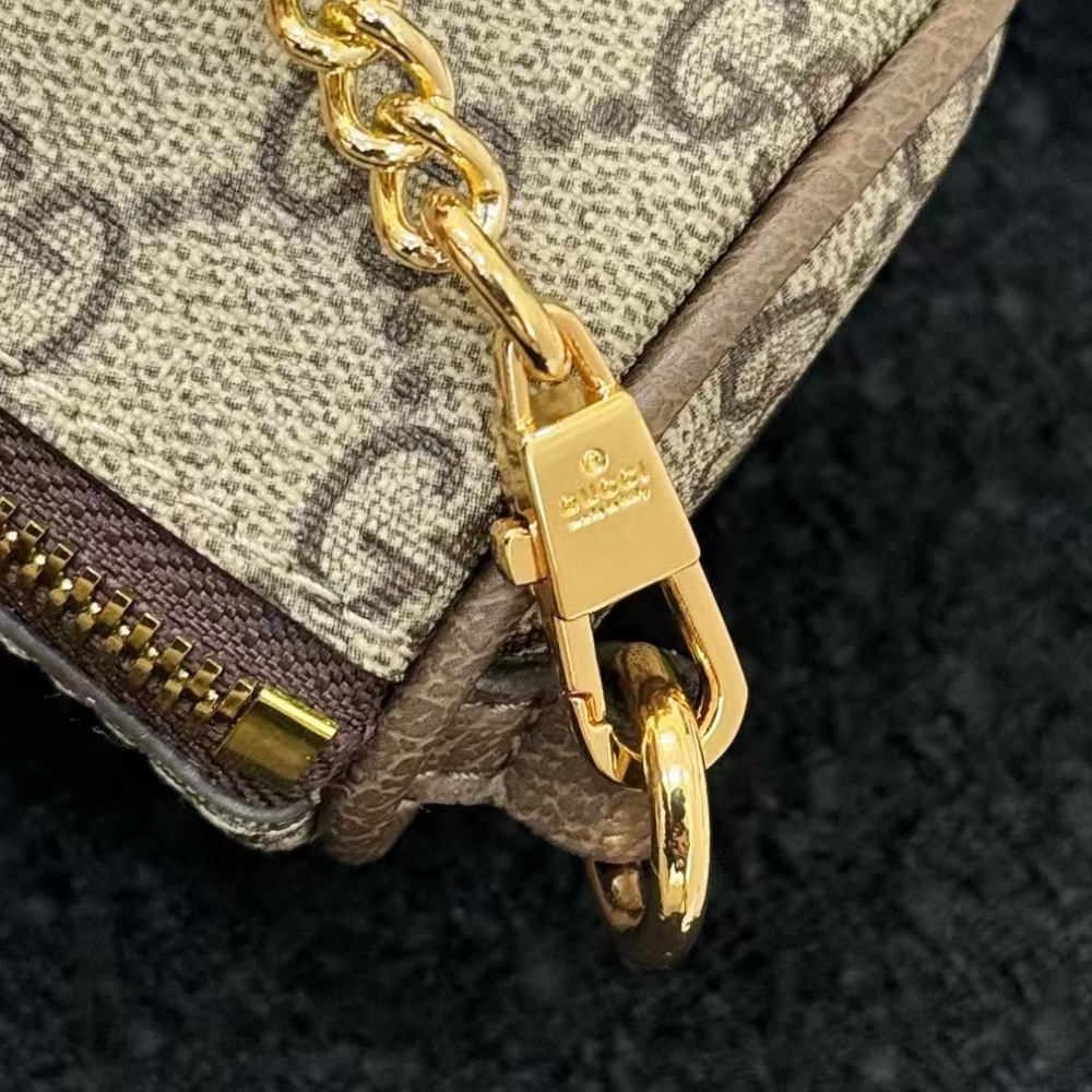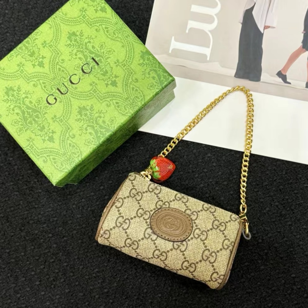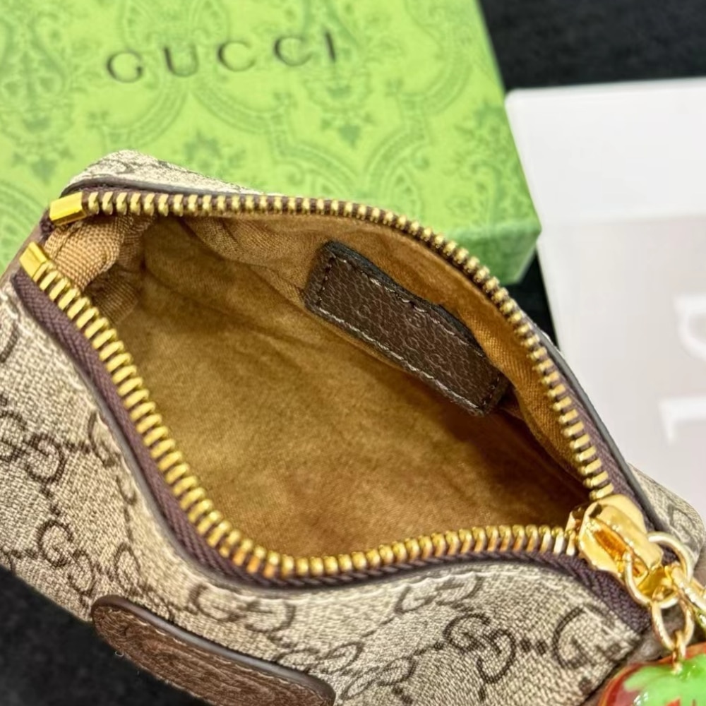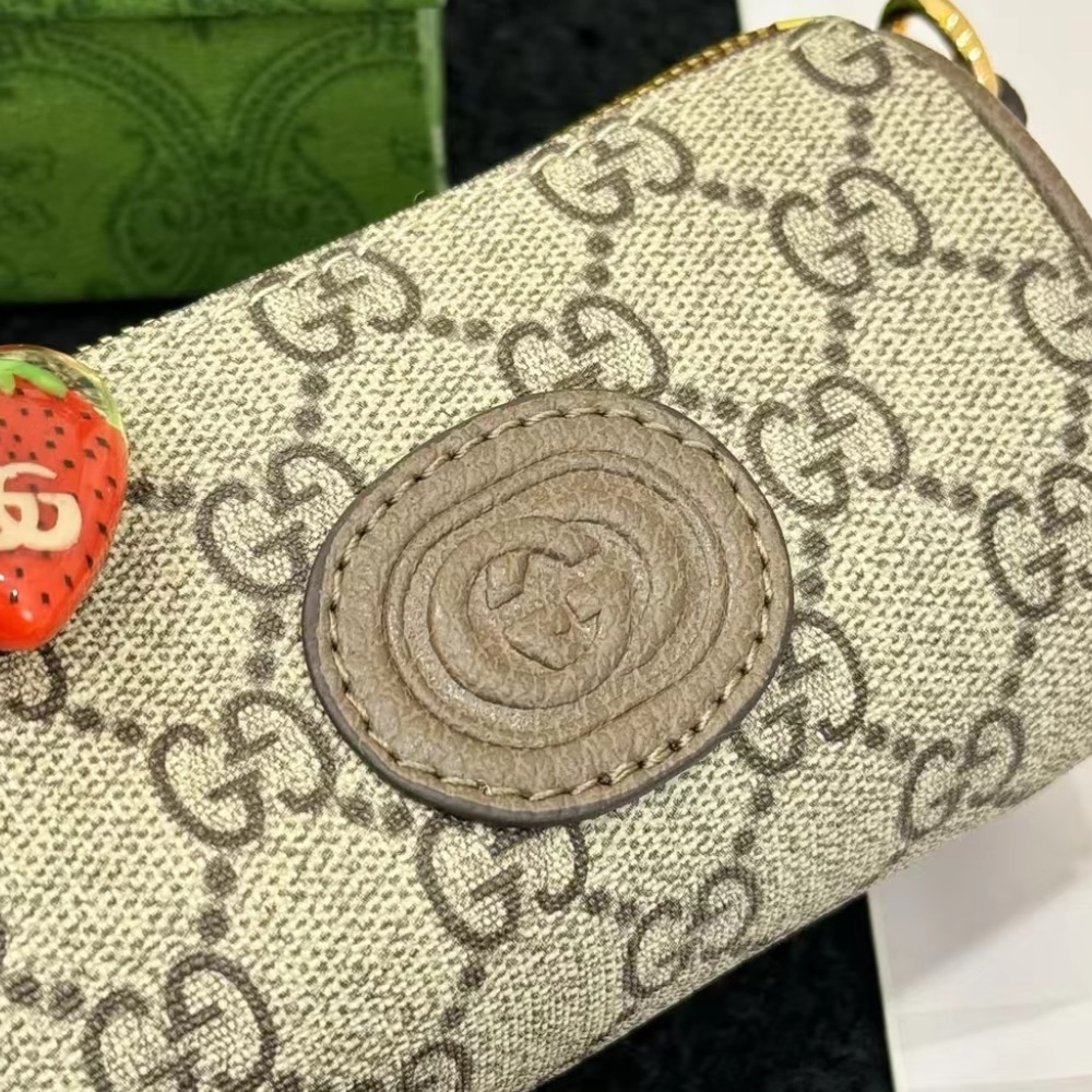 Gucci Double G Coin Purse Strawberry Wallet Beige 13Cm