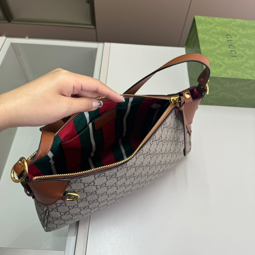 Gucci Gg Emblem Small Shoulder Bag Beige And Dark Brown 30Cm 815218 Faeaa 9762