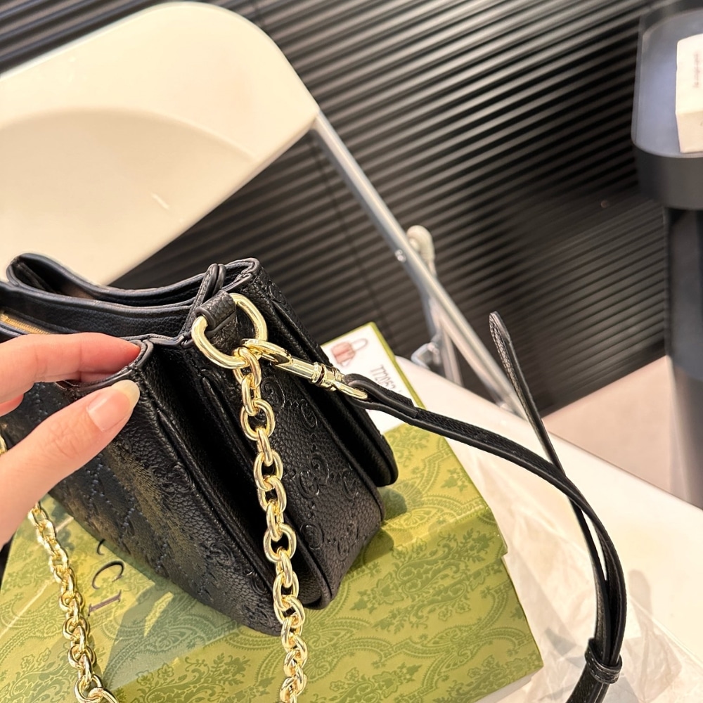 Gucci Gg Emblem Small Shoulder Bag Black Leather 23Cm