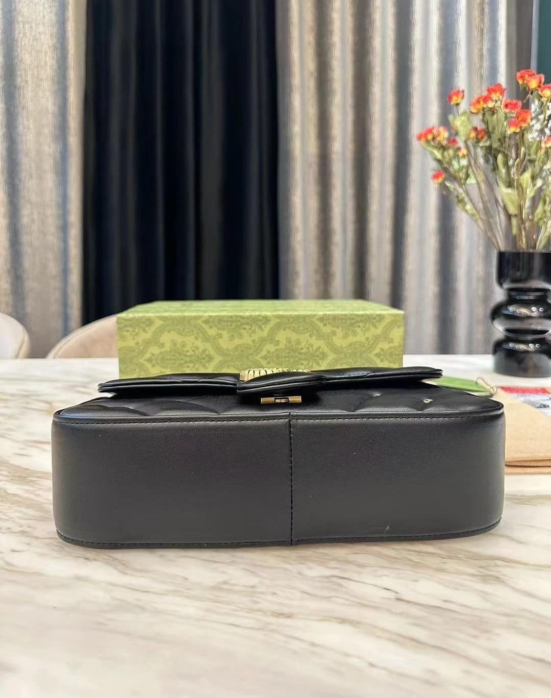 GUCCI GG MARMONT SHOULDER BAG BLACK 23CM 443497 AACPG 1000