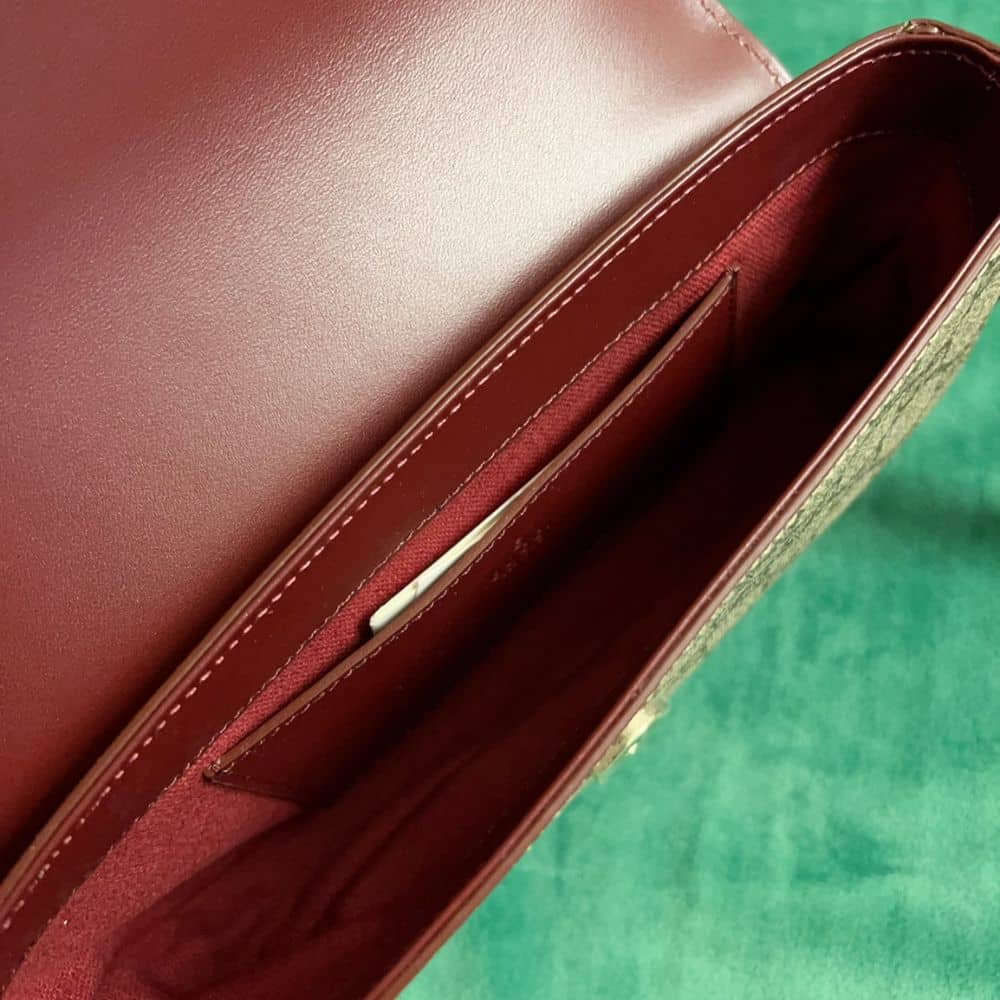 - Gucci Rosso Ancora red leather trim