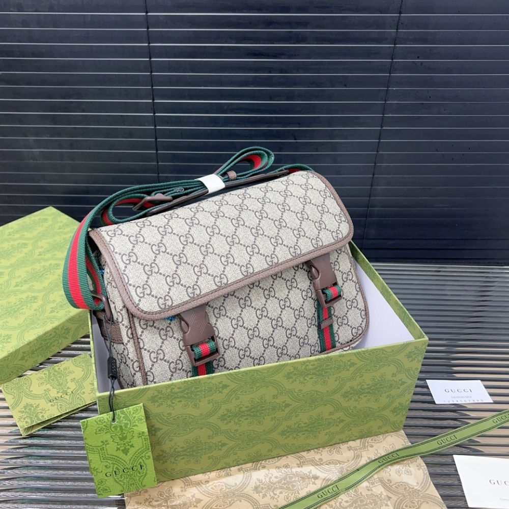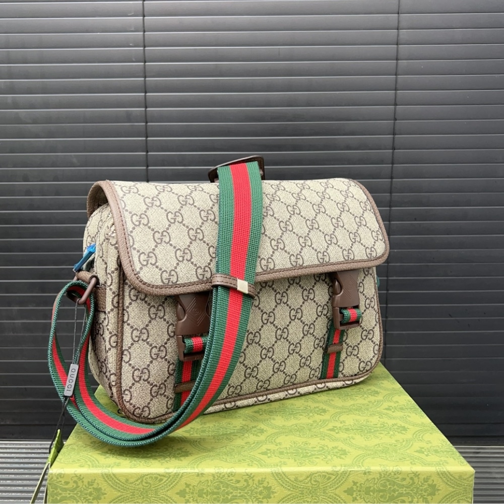 Gucci Gg Supreme Canvas Small Messenger Bag Beige Ebony 23Cm