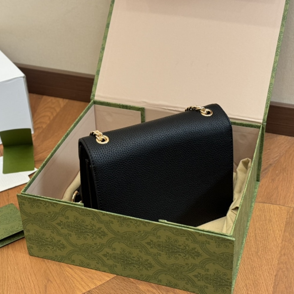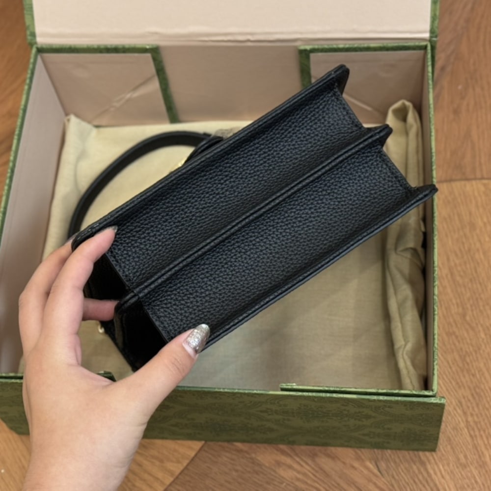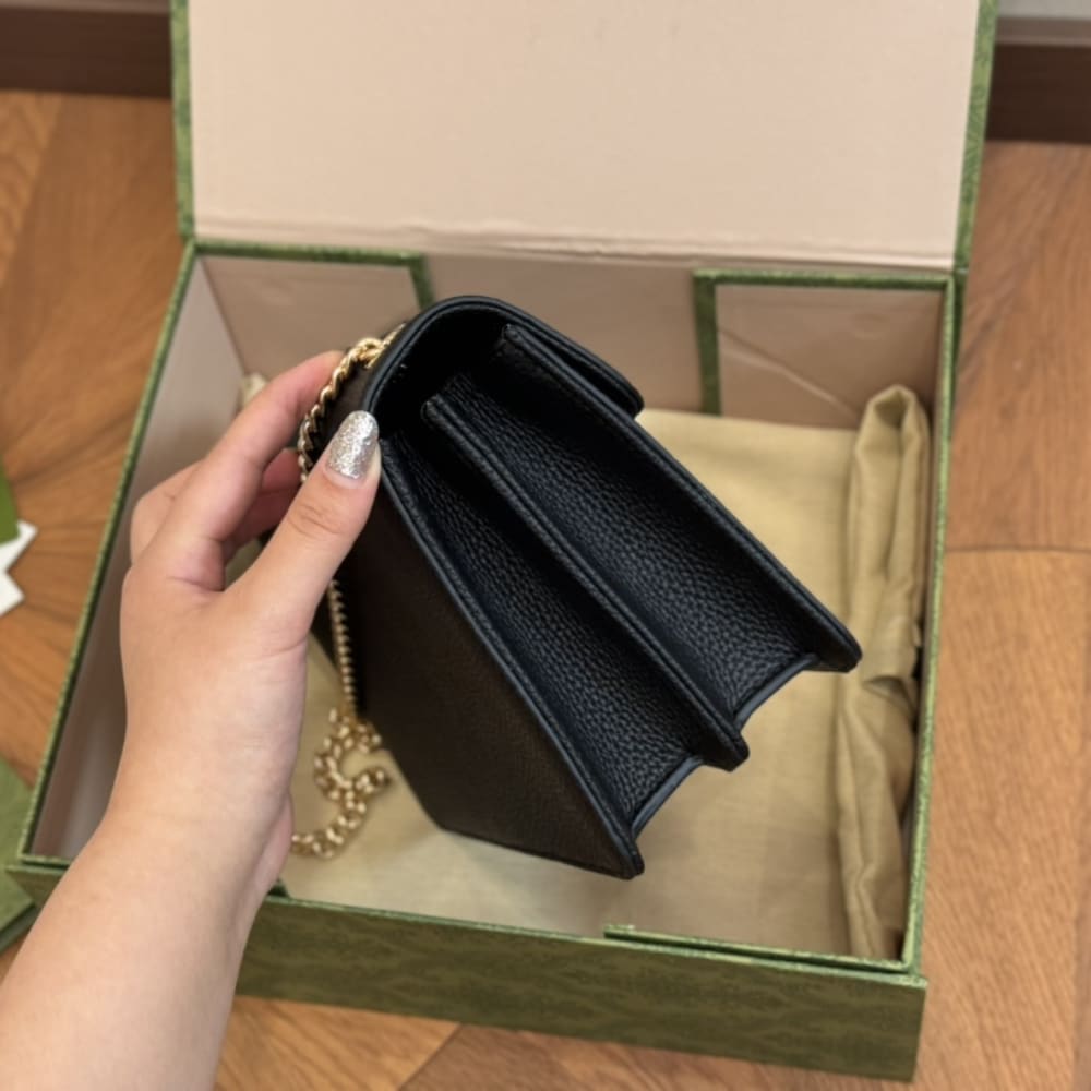 Gucci Interlocking Leather Chain Crossbody Bag Black 20Cm
