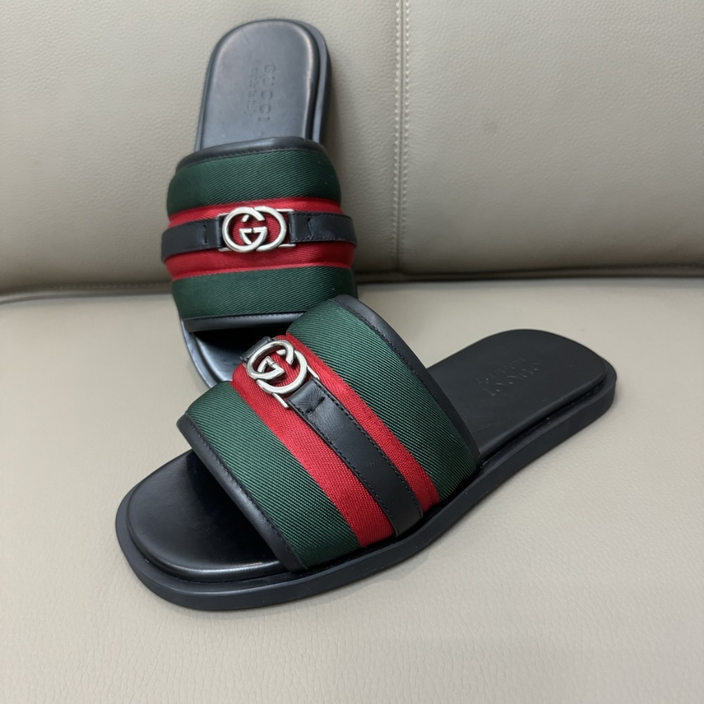 Gucci Men Slide Sandal With Interlocking G Green And Red 835091 Haahh 8449