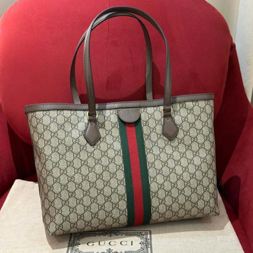 Gucci Ophidia Large Tote Bag Gg Supreme Beige And Dark Brown 38cm 631685 96iwb 8745