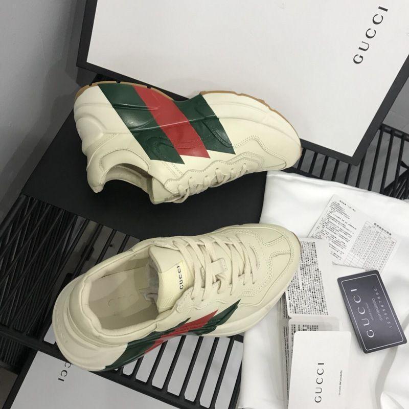 GUCCI REPLICATED RHYTON GREEN AND RED WEB PRINT WHITE LEATHER SNEAKERS