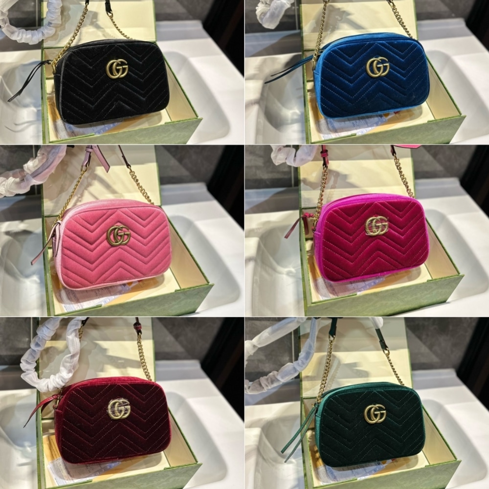 Gucci Small Gg Marmont Camera Bag Velvet Wine Red 23Cm