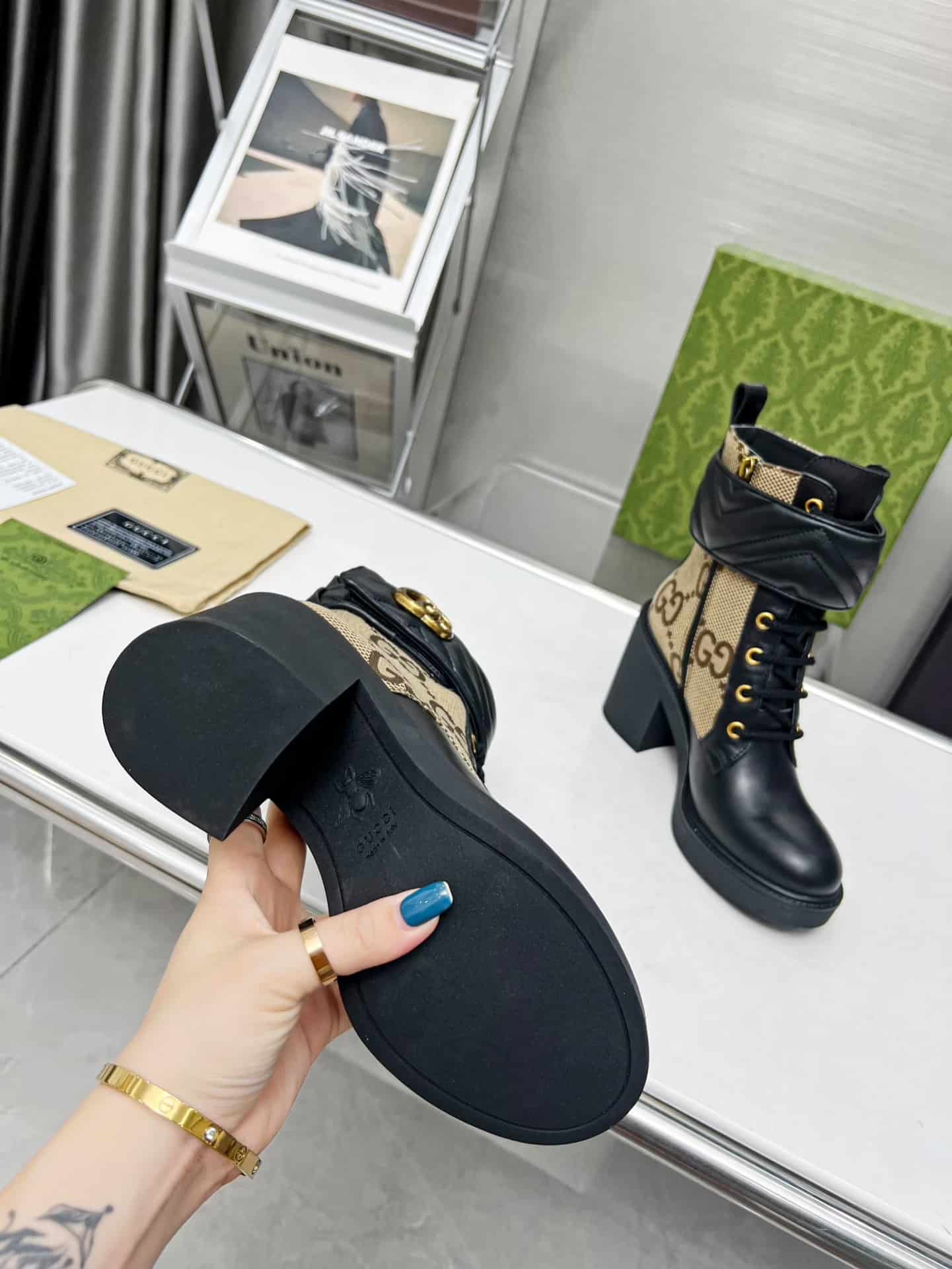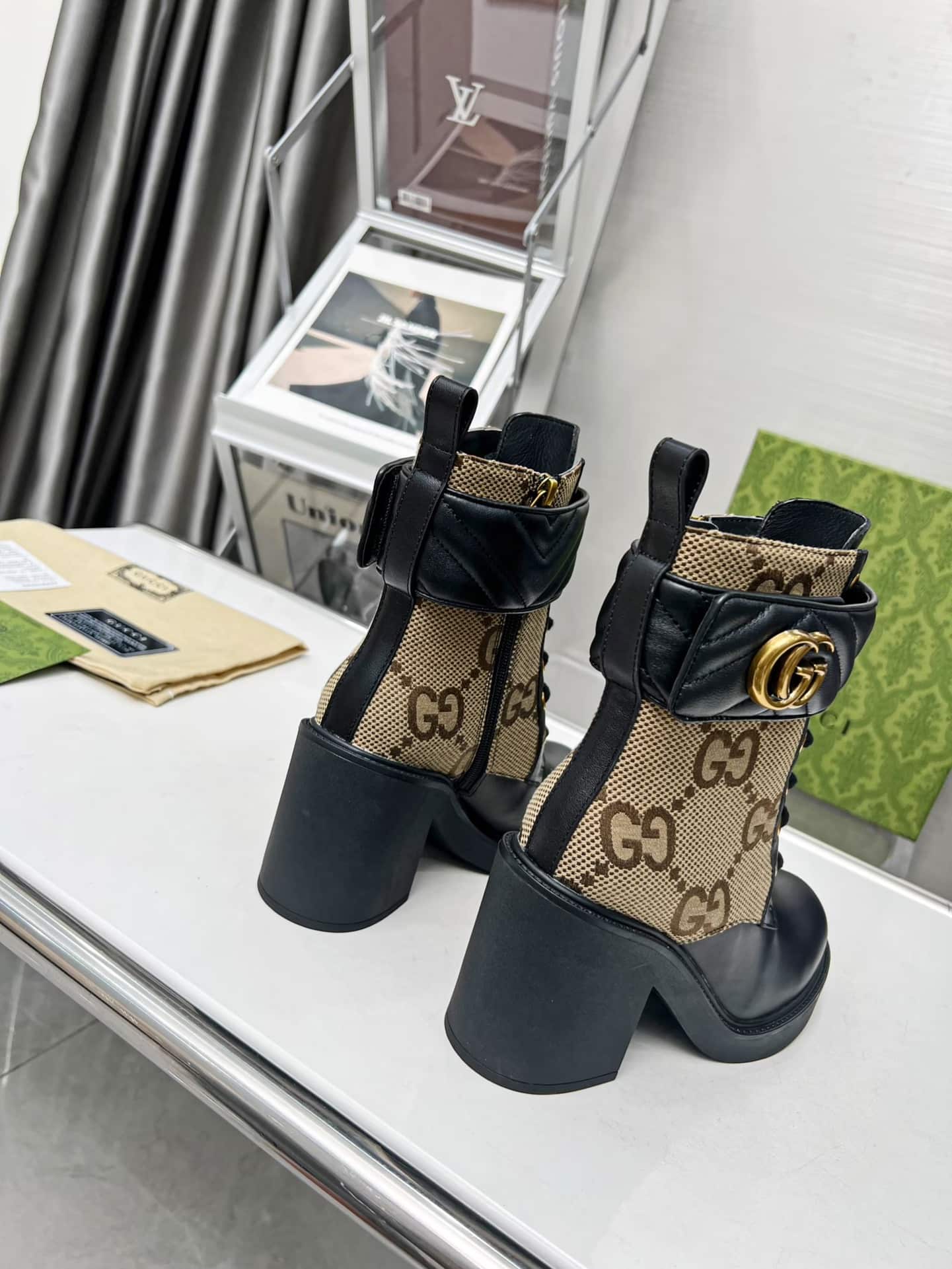 Gucci With Double G Ankle Boots Camel Ebony 719849 Aabd0 1183