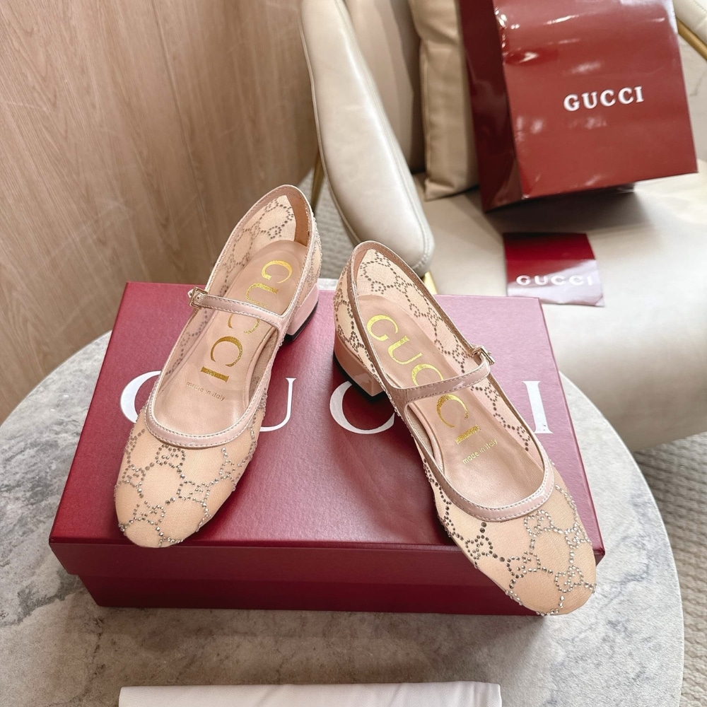 Gucci Women Gg Crystal Ballet Flat Light Pink Mesh 836809 Faeq0 9941