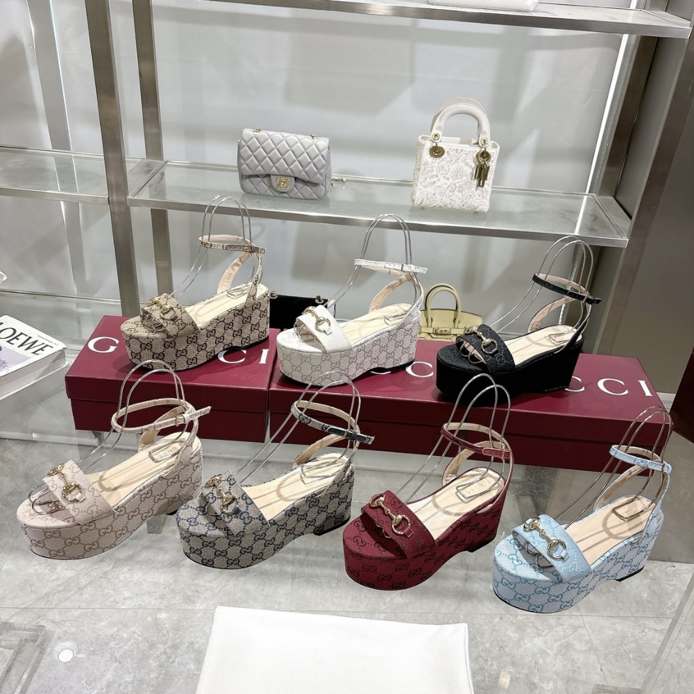 Gucci Women Horsebit Flatform Sandal Beige And Ebony 794718 2Hk80 9741