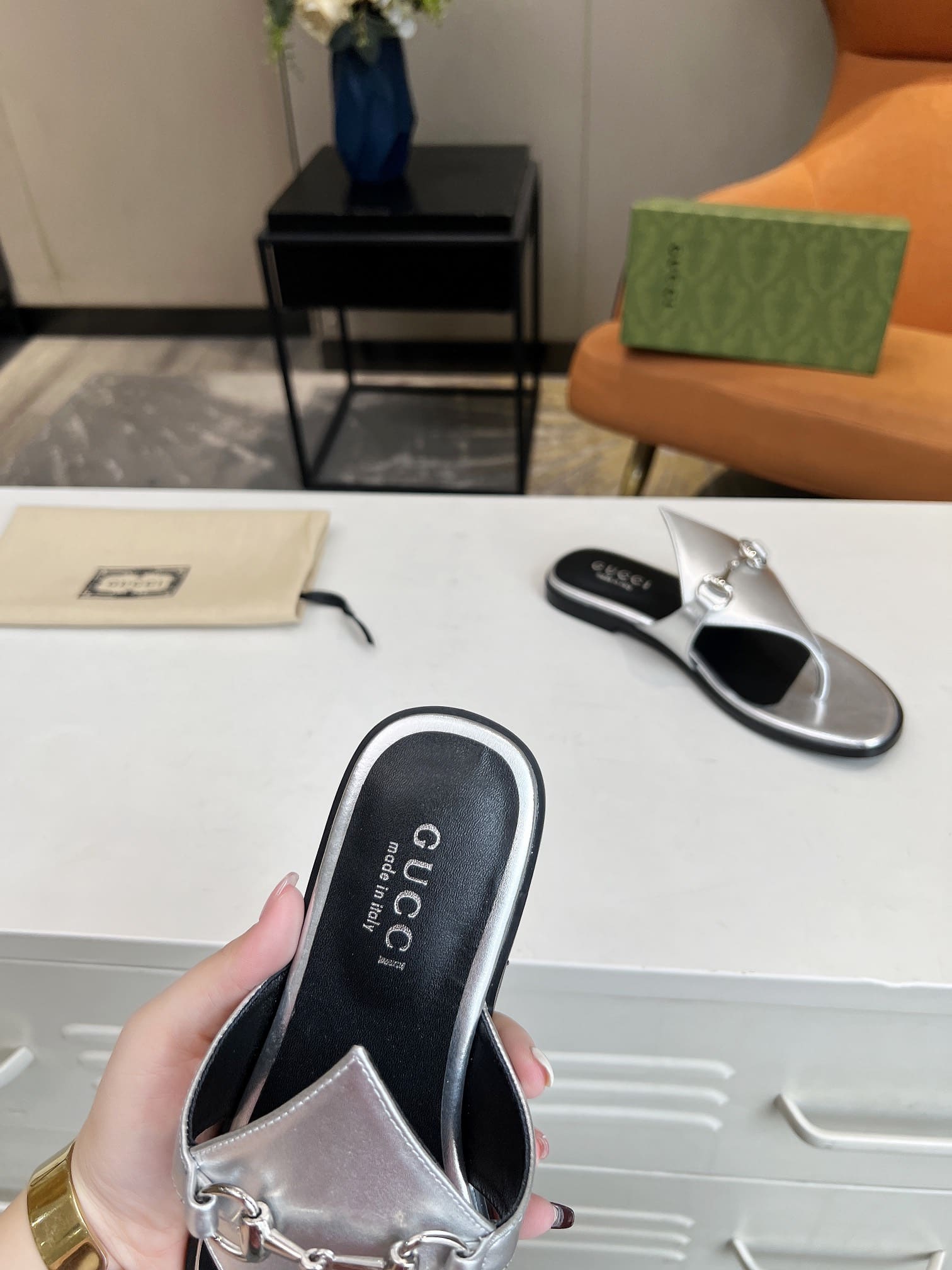 Gucci Women’S Thong Sandal With Horsebit Silver