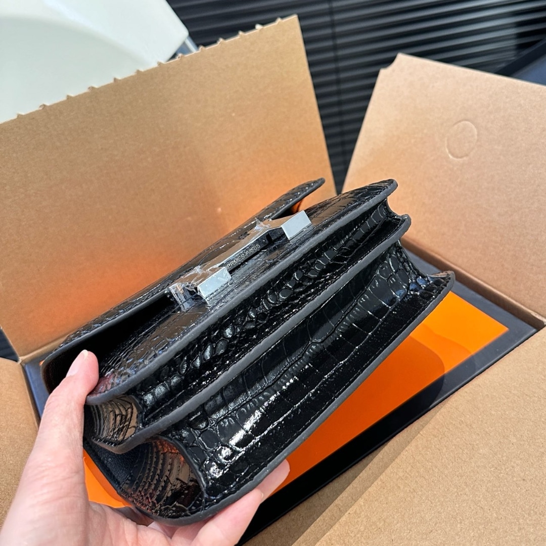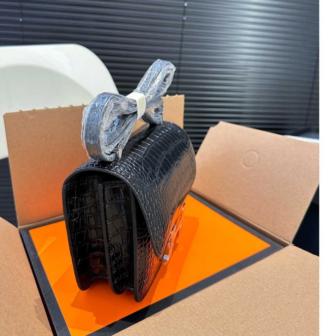 Hermès Mini Constance 19 Shiny Alligator Palladium Hardware Black 19Cm