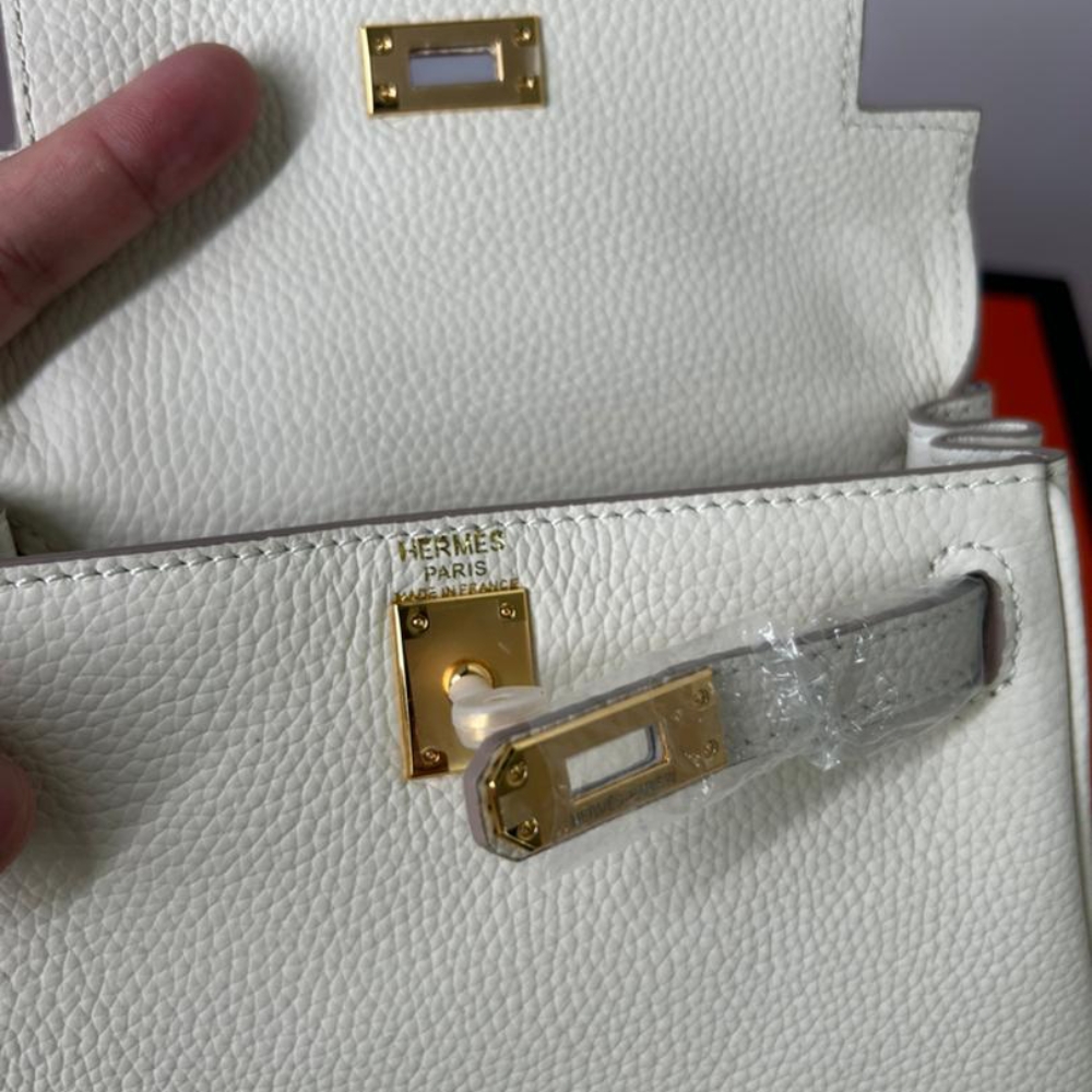 Hermes Mini Kelly Bag Epsom White Gold Hardware 20Cm