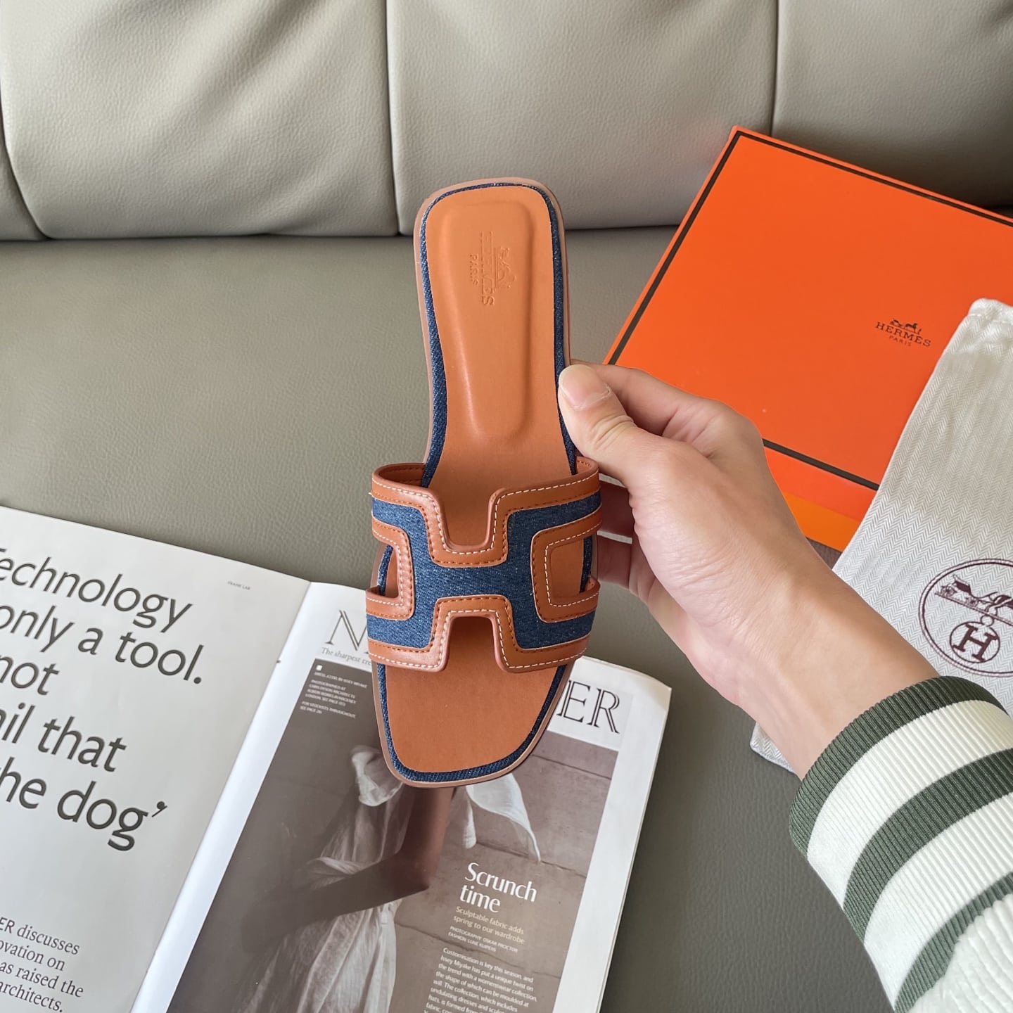 Hermès Oran Sandal Bleu Brut Gold H221105ZV48340 features a sleek, minimalist design crafted from premium leather, highlighted by the iconic H cut-out detail. Designed for effortless comfort and timeless elegance, it offers an easy slip-on style perfect for everyday wear. A refined essential that pairs seamlessly with both casual and resort-inspired looks.