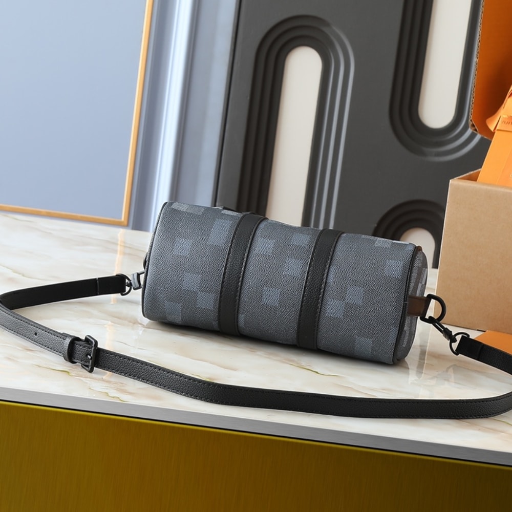 The Keepall Bandoulière 25 bag is crafted from Damoflage Black Canvas with a Damier Graphite pattern, a reinterpretation of Creative Director Pharrell Williams’ new aesthetic. The iconic checkerboard pattern is reinterpreted in subtle pixel art, creating a unique camouflage effect in a sophisticated black color scheme. Meanwhile, the handle and detachable, adjustable shoulder strap offer versatile styling options. The actual product may differ slightly from the photos depending on the pattern placement.