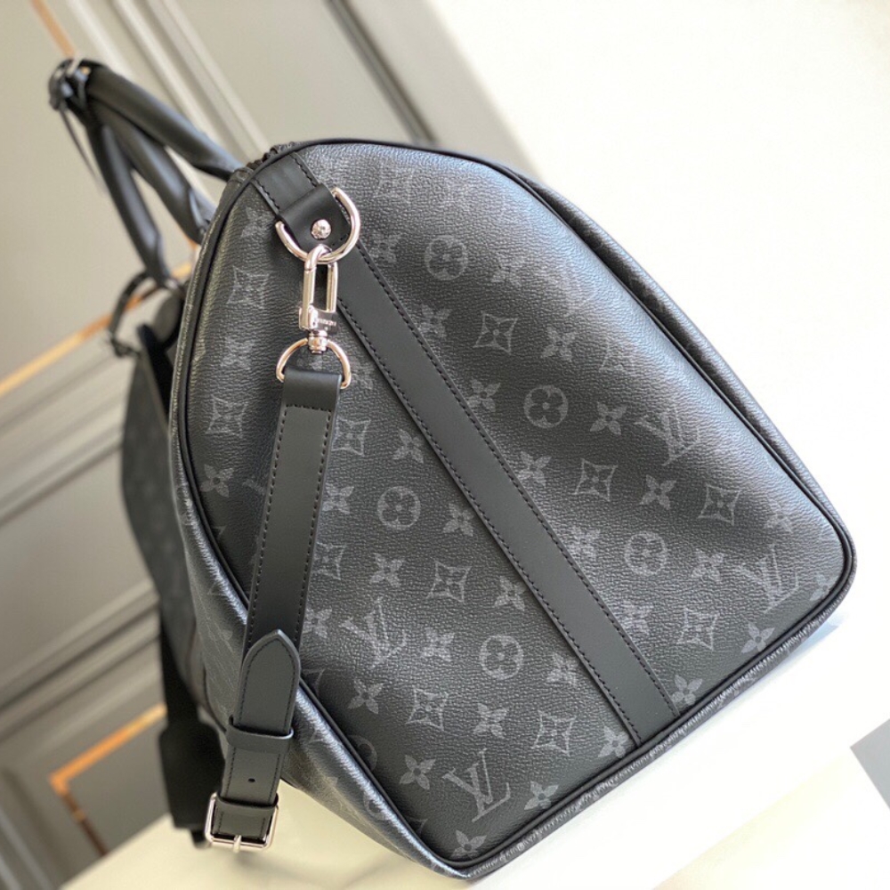Replica 1:1 – Louis Vuitton Keepall Bandoulière 50 Monogram Eclipse Boston Travel Bag Black 50cm M14202
