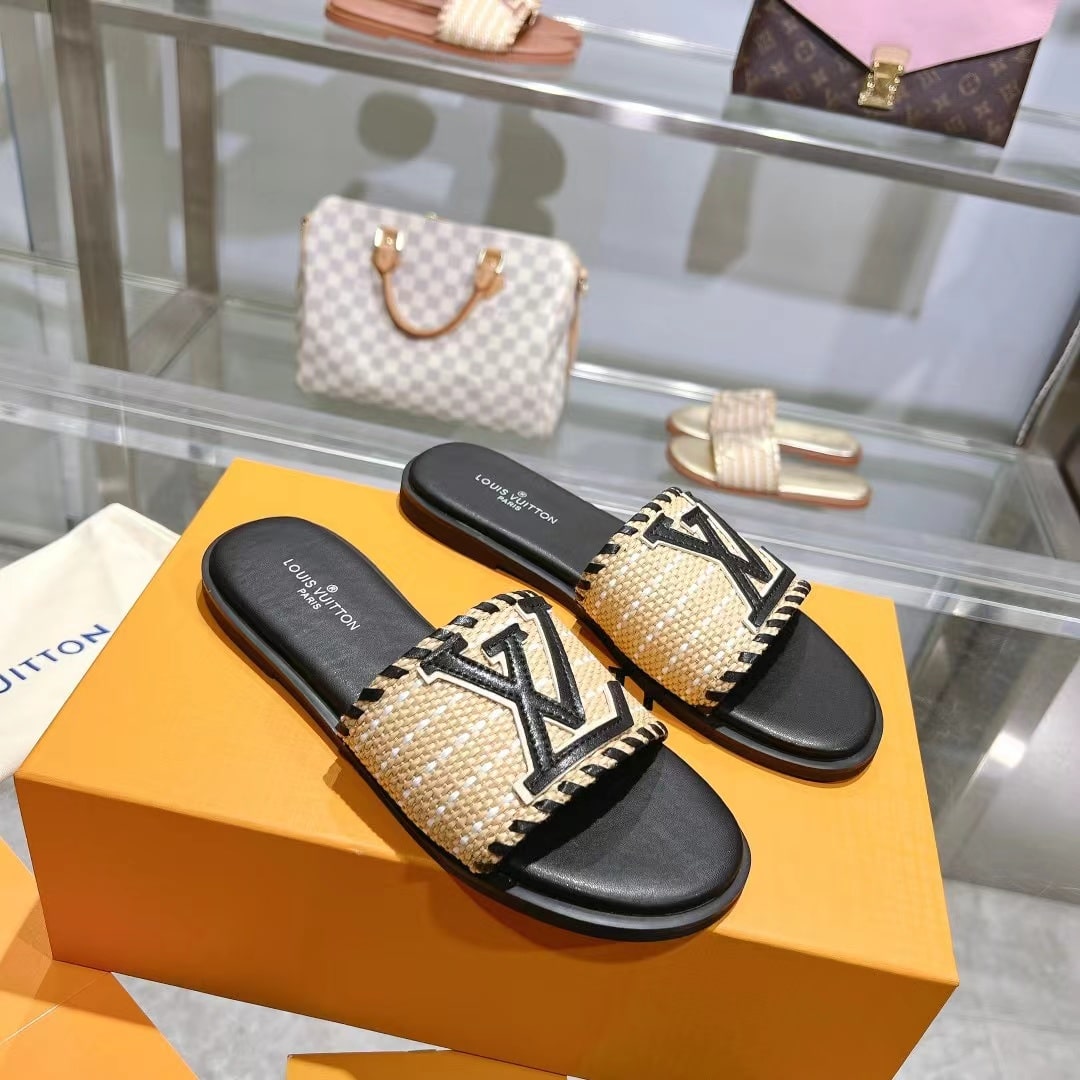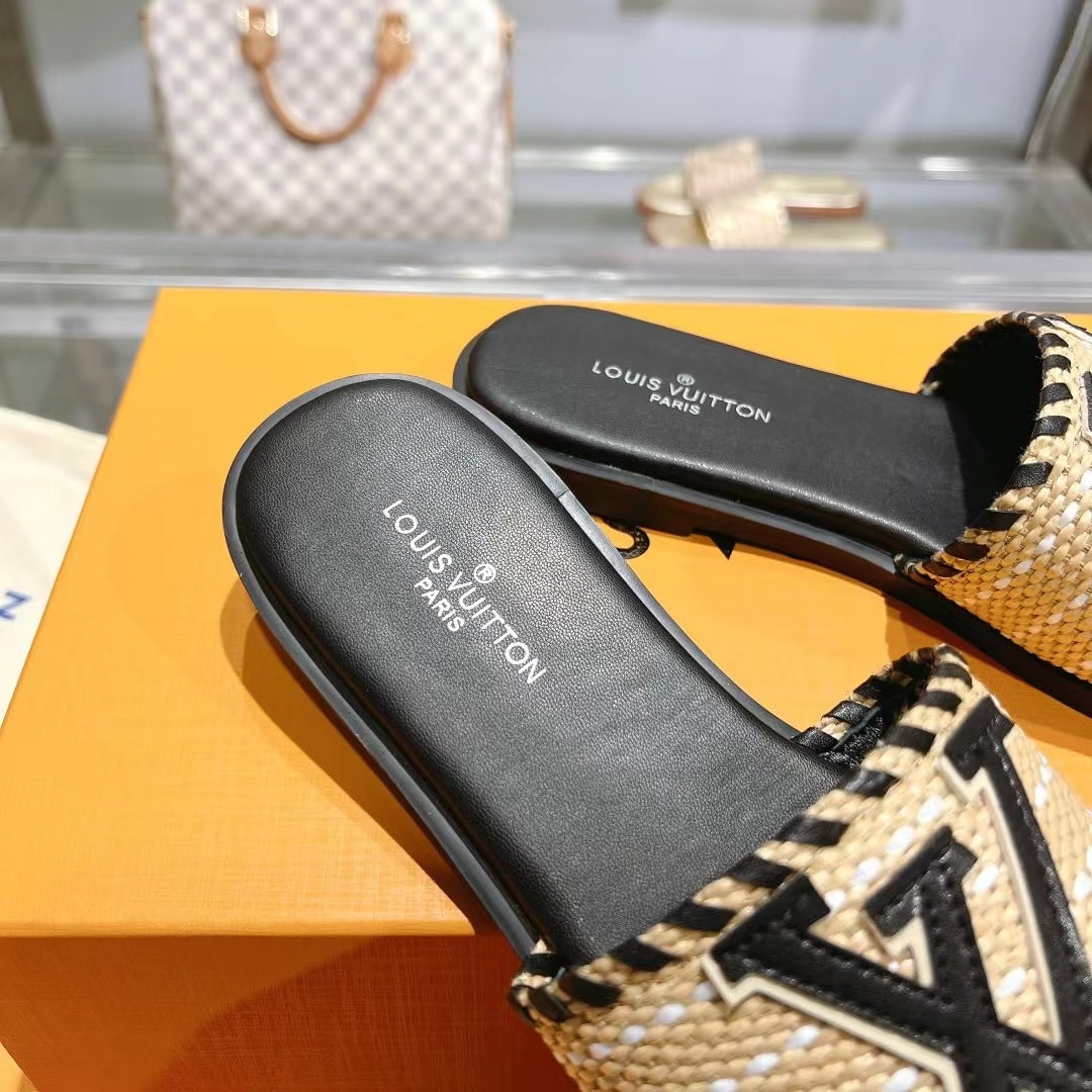 Louis Vuitton Lock It Flat Raffia Mules Black