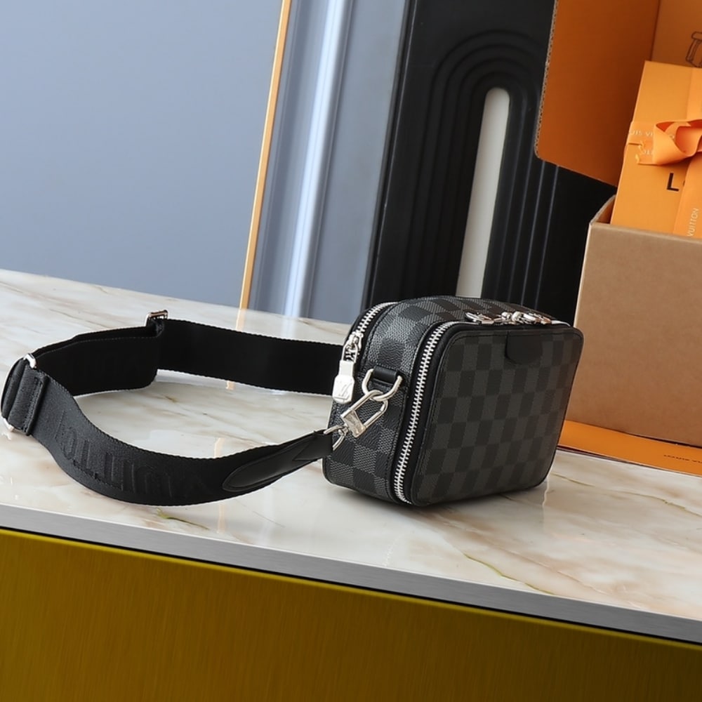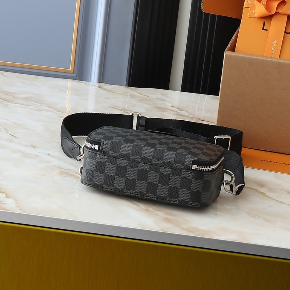 This impeccable Alpha Wearable Wallet Bag is a newer creation from Louis Vuitton. A simple nylon shoulder strap with polished hardware is perfect for hands-free convenience. This wearable wallet bag has black leather detailing and the iconic Graphite Damier pattern for a modern look and feel. Perfect for every day use!
