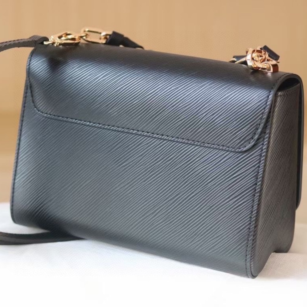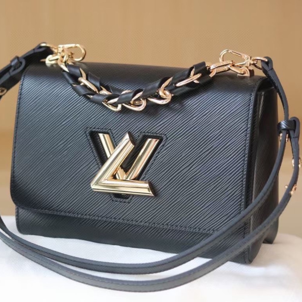 Louis Vuitton Lv Twist MM Leather Handbag Black 23Cm