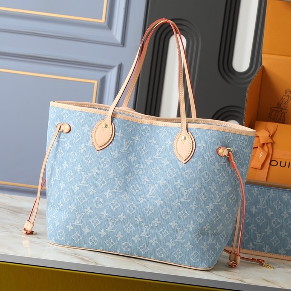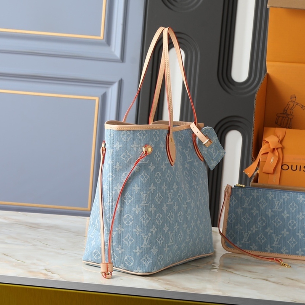Louis Vuitton Neverfull Mm Bag Monogram Denim Blue 31Cm