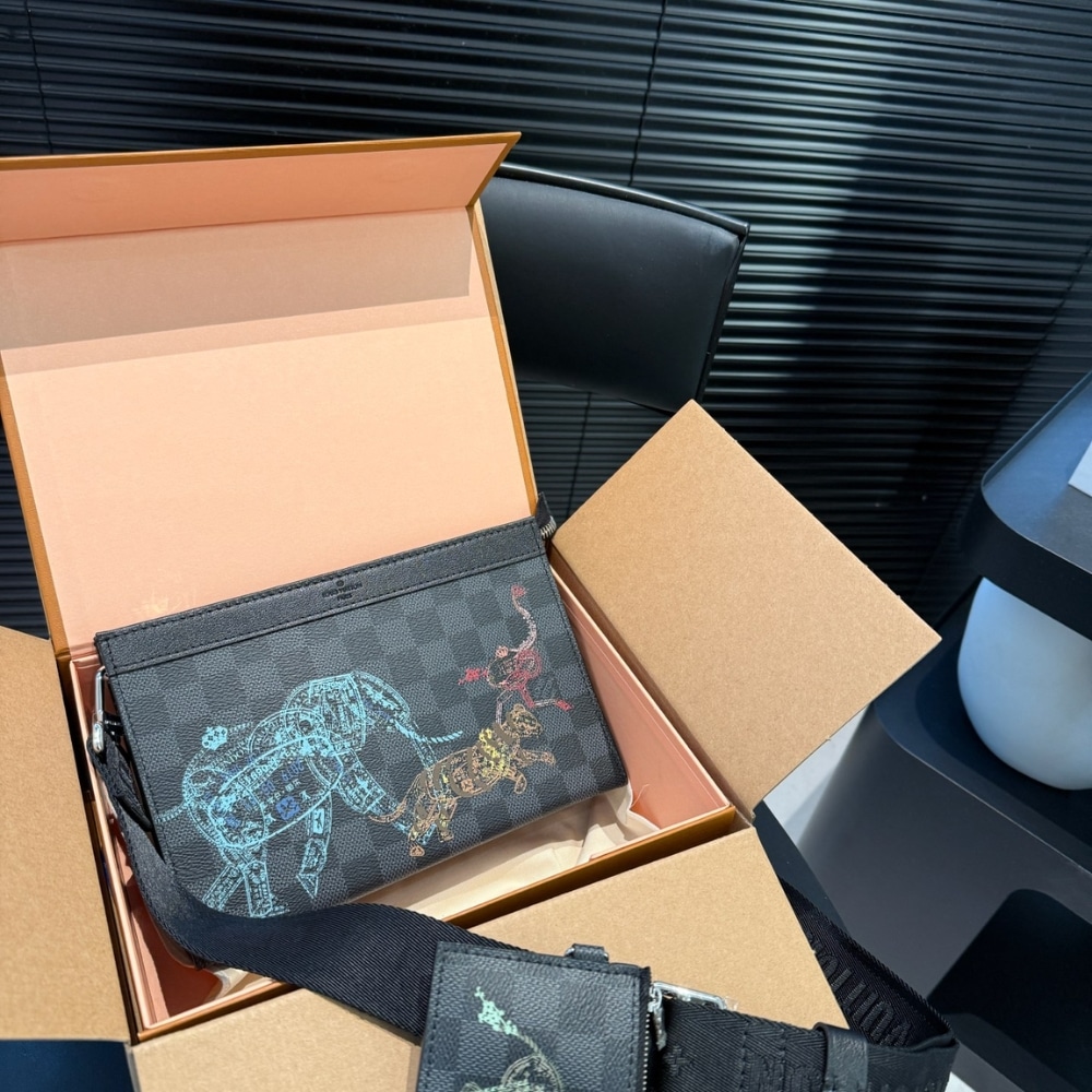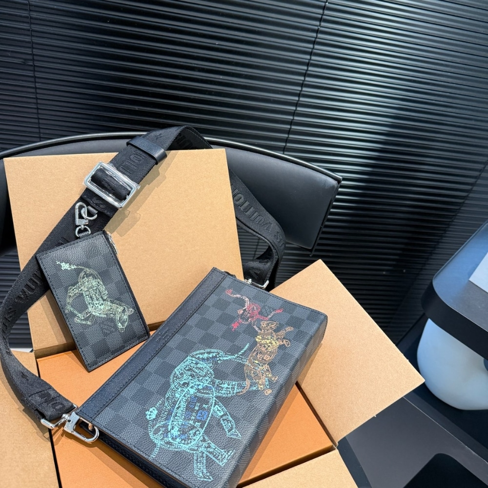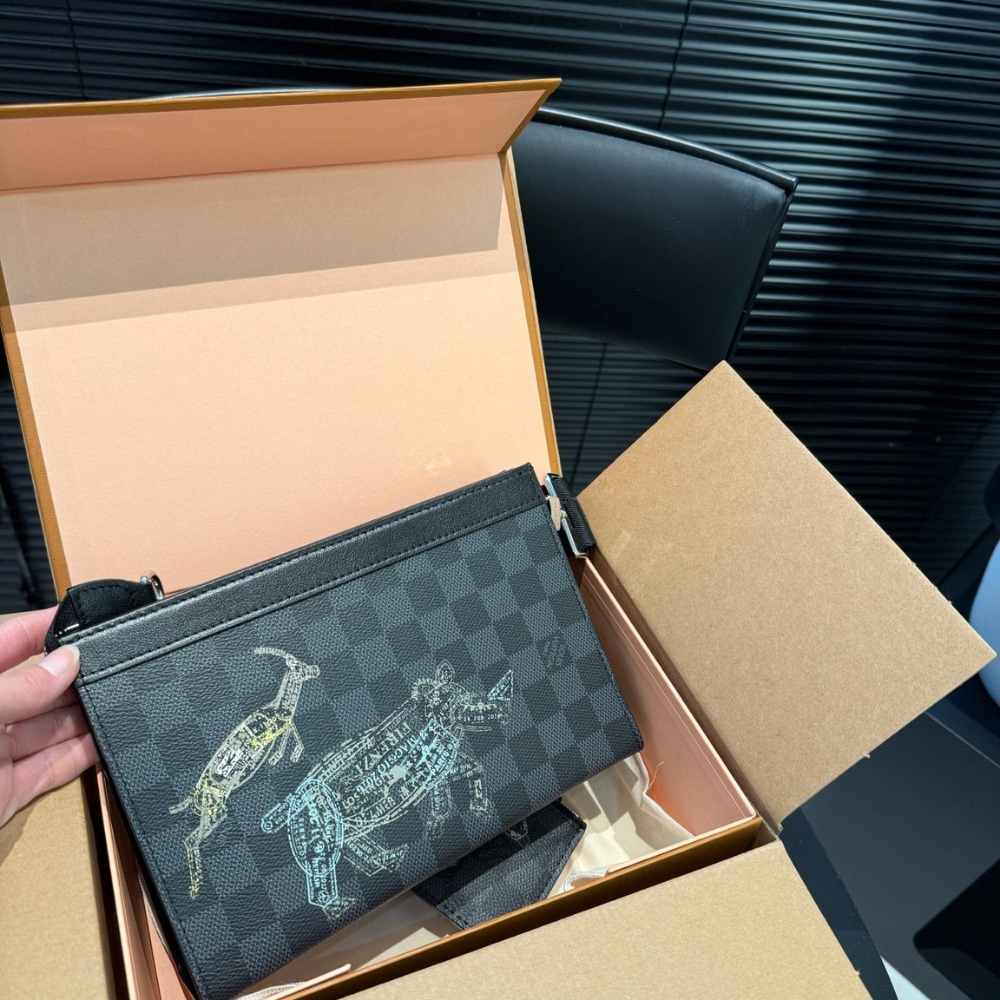 Louis Vuitton Pochette Voyage MM Damier Graphite Stamps Black 27cm N64605