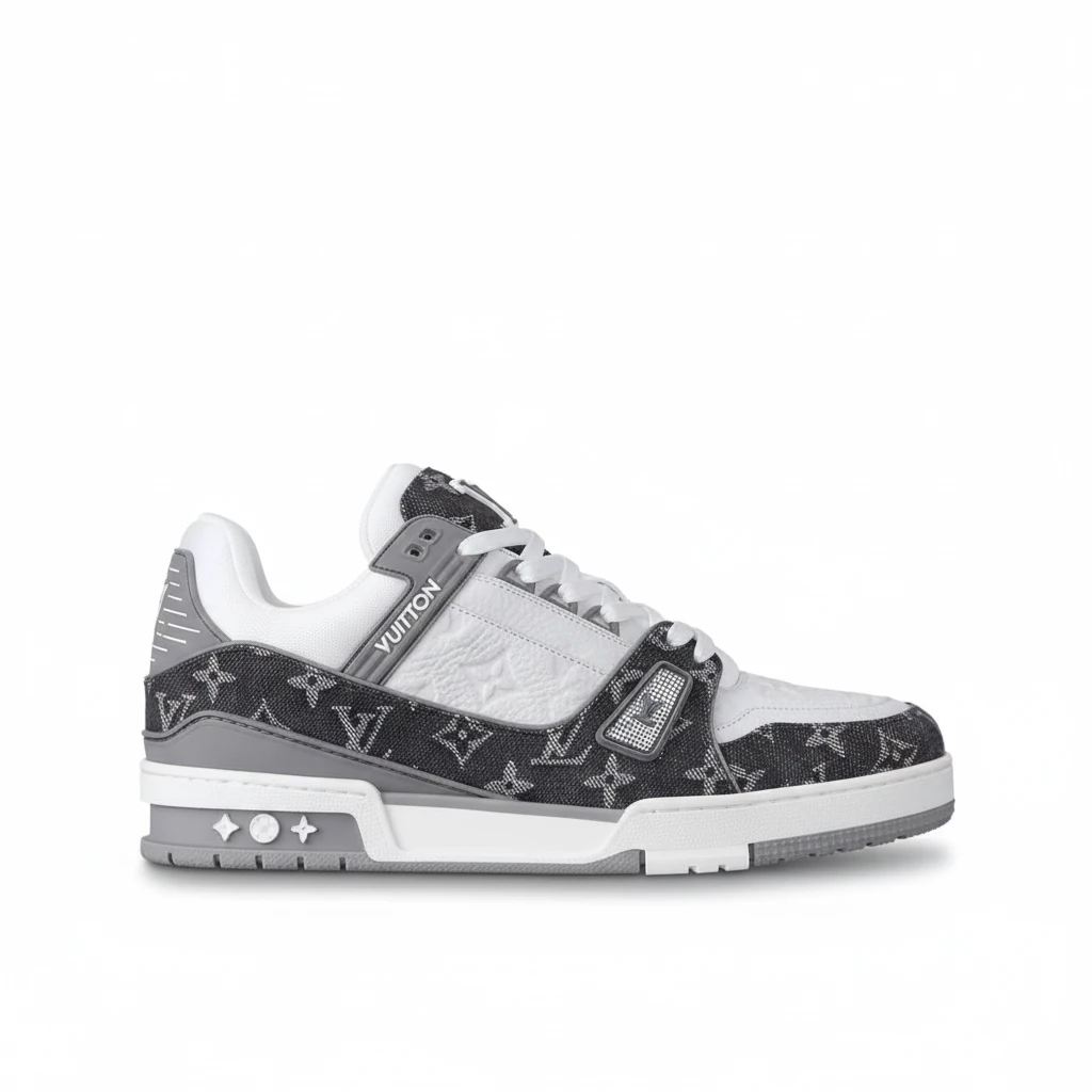 Originally a creation by designer Virgil Abloh inspired by classic basketball shoes, the iconic LV Trainer men’s sneaker is making its debut in a women’s version, crafted from Monogram Denim. This model is distinguished by signature details such as the LV logo on the tongue and side, combined with the Monogram floral motif on the outsole.
