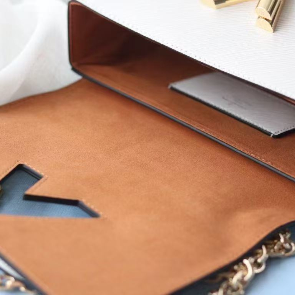 Crafted from the House’s emblematic Epi leather, the Twist MM chain bag features the now-iconic LV Twist lock, a sculptural signature in silvery polished metal. Unexpectedly roomy thanks to the cleverly designed “wave” base, this beautifully made bag is a fashionable day-to-evening companion. The sliding chain strap can be doubled for shoulder carry or lengthened for cross-body wear. A New Classic of the House, the Twist bag was introduced at the 2015 Cruise show.