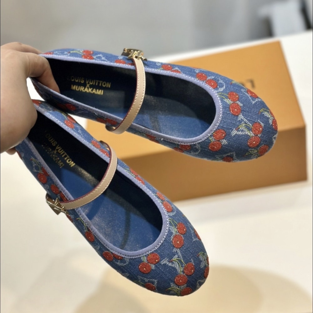Louis Vuitton X Takashi Murakami Romy Flat Ballerina Monogram Cherry Denim 1Ahkov
