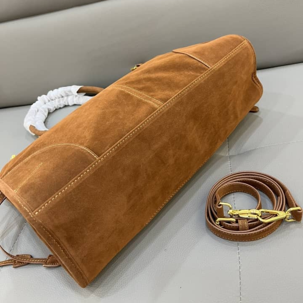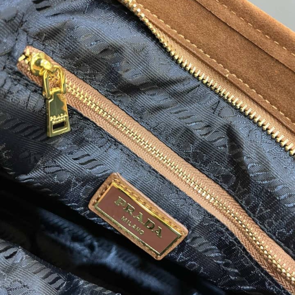Prada Bonnie Large Suede Handbag Brown 38Cm 1Ba433 2C4S F0401 V Moo
