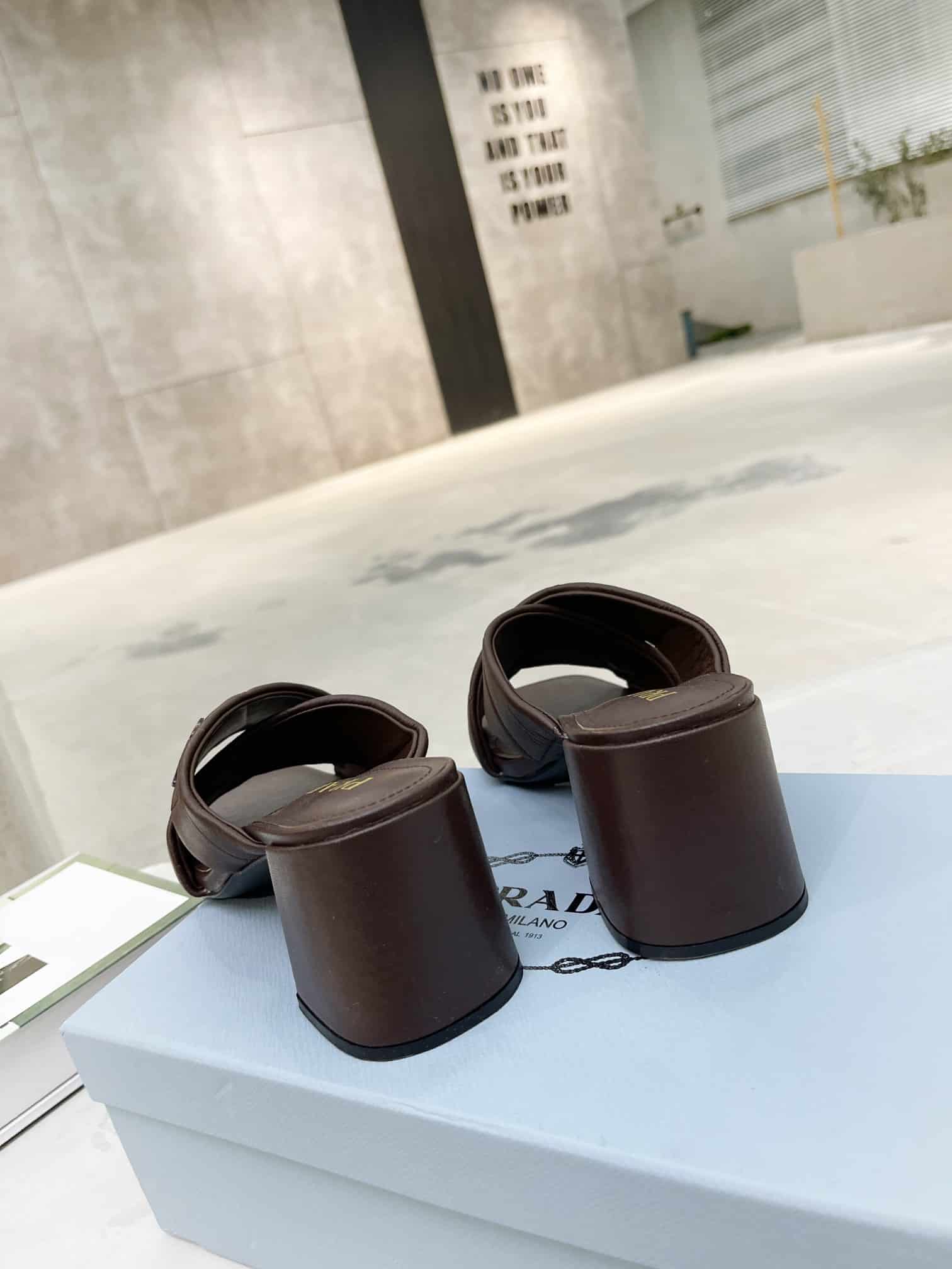Prada Crossover Nappa Leather Sandals In Dark Brown