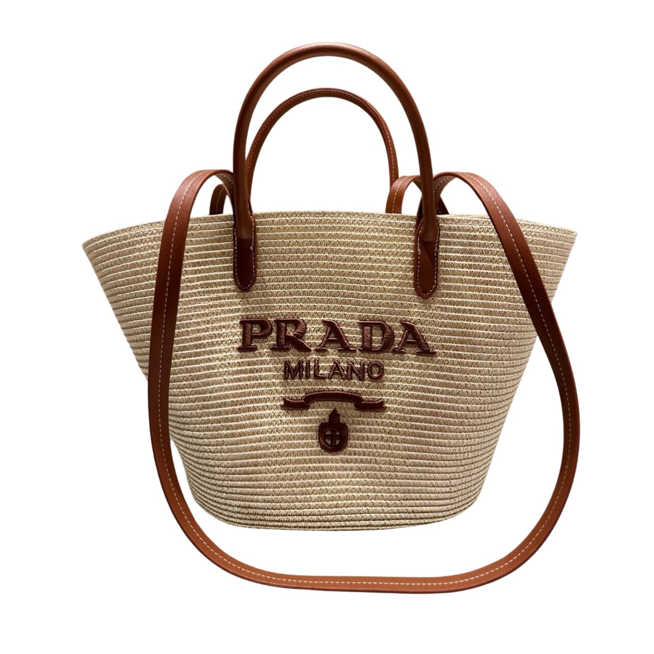 Prada Large Raffia And Leather Shopping Bag 25Cm 1Bg470 2Cxq F0A5T V Goo