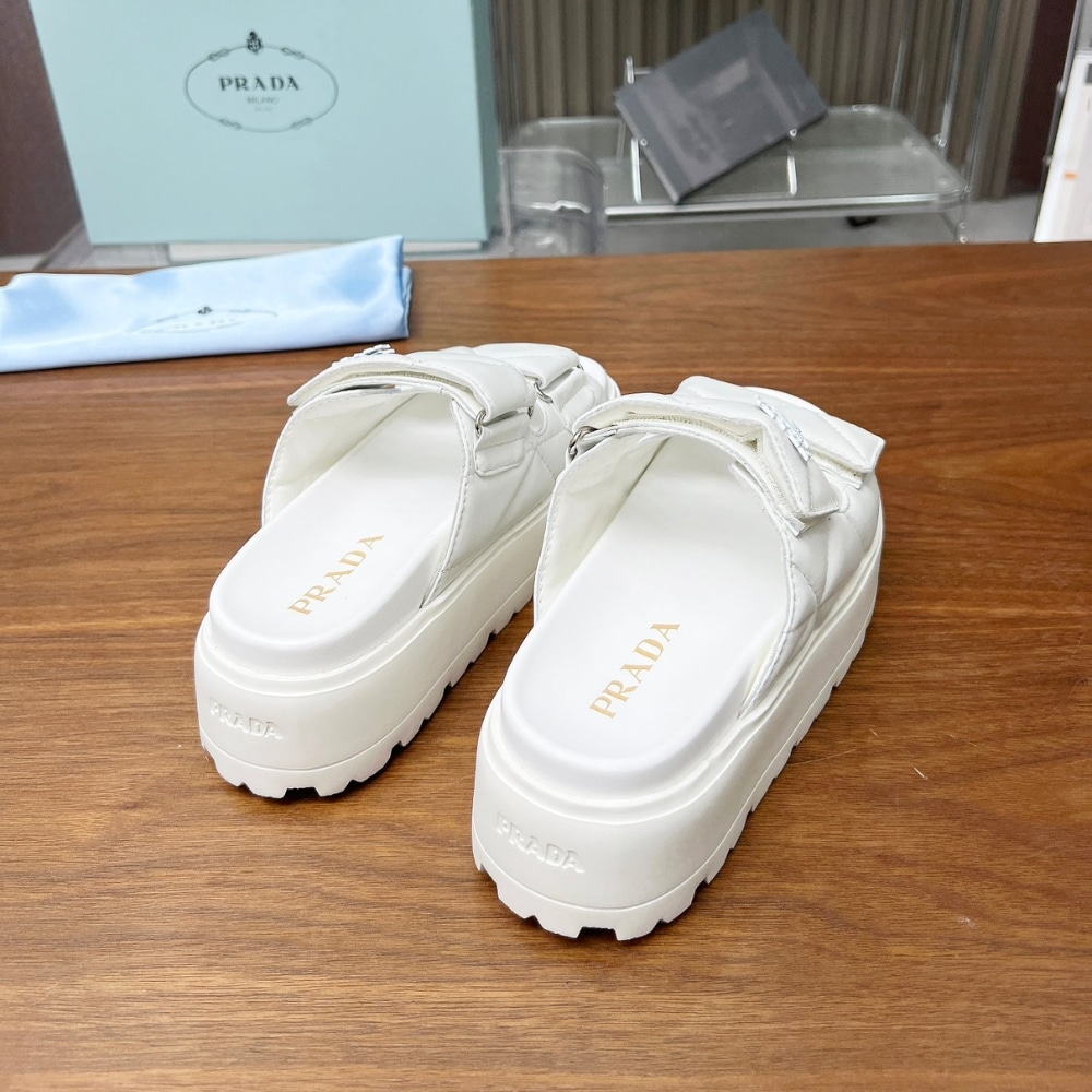 Prada Quilted Leather Platform Sandals White