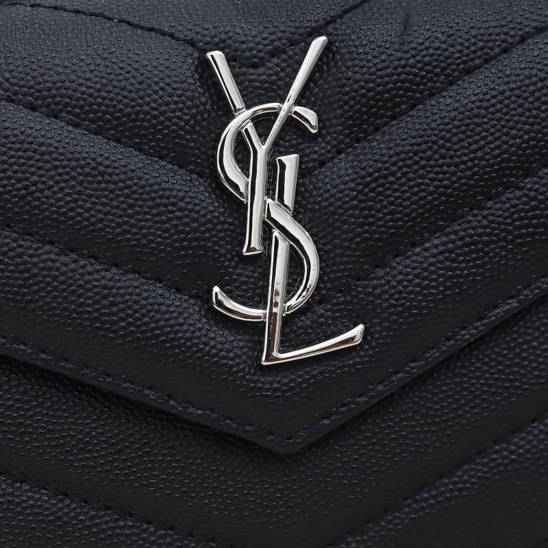 Saint Laurent Cassandre Matelassé Small Envelope Wallet In Grain De Poudre Leather Black Silver 13Cm 414404Bow021000