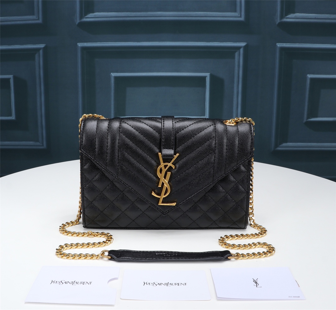 Saint Laurent Envelope Small In Quilted Grain De Poudre Embossed Leather Gold Black 21Cm 600195Bow911000