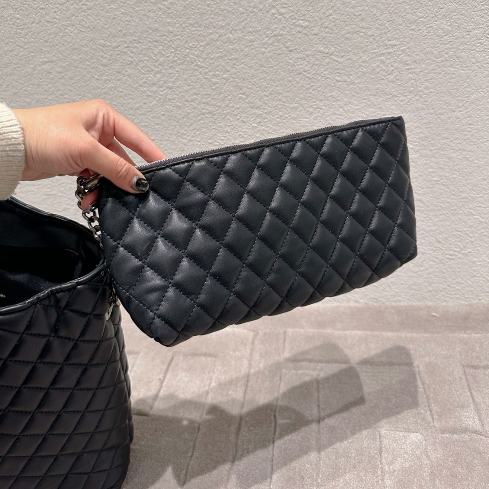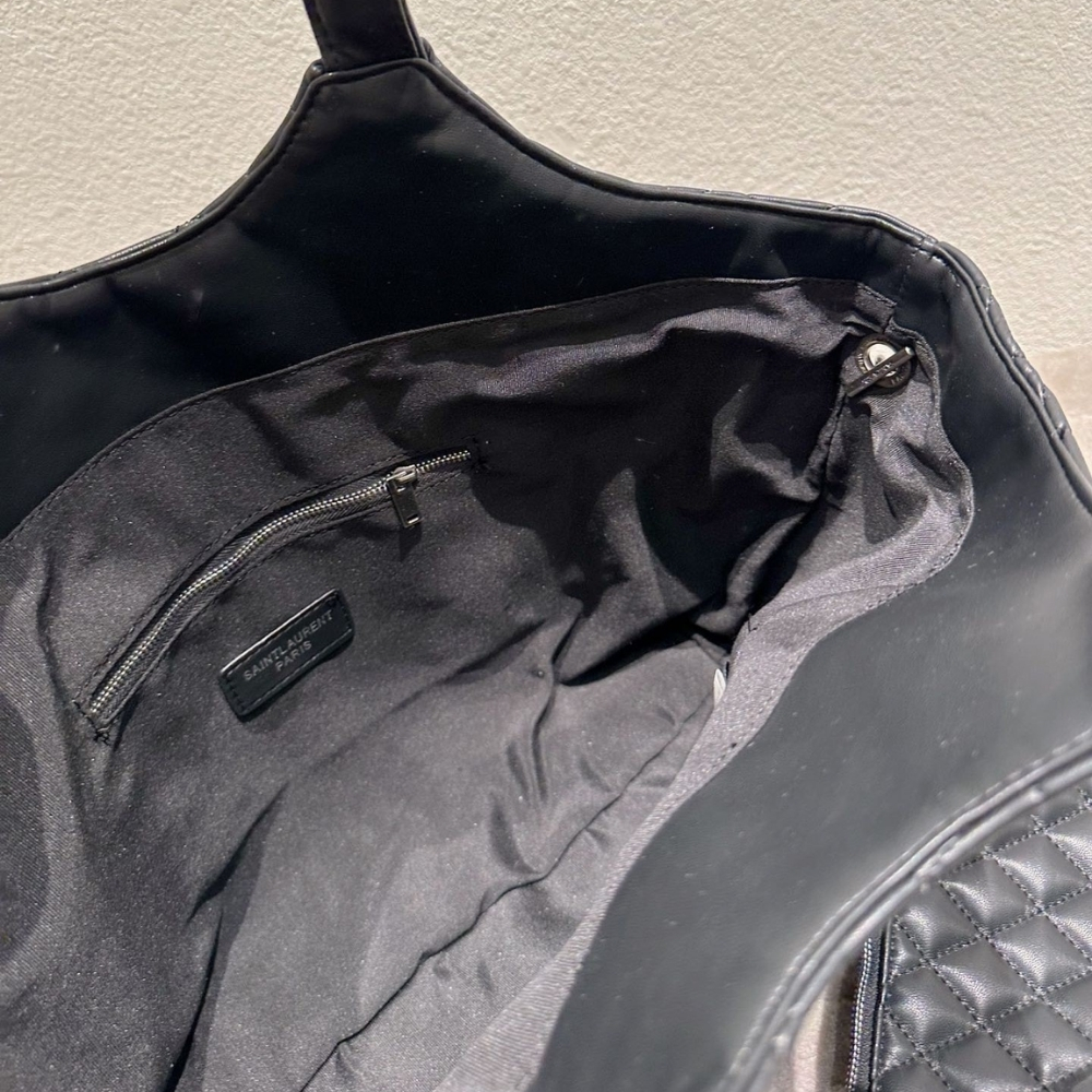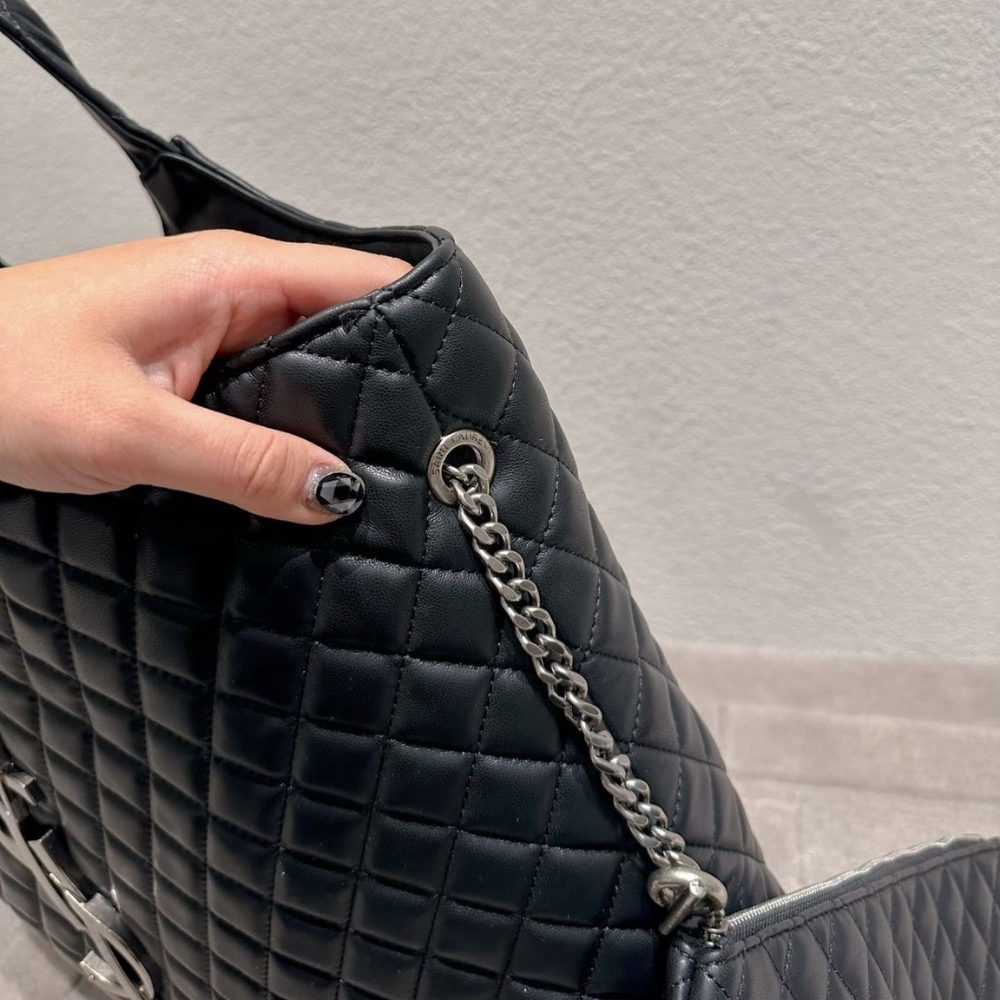 Saint Laurent Icare Shopping Bag In Quilted Silver Hardware Black 40Cm
