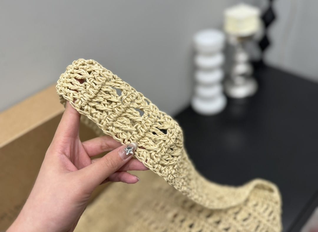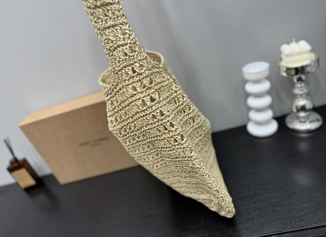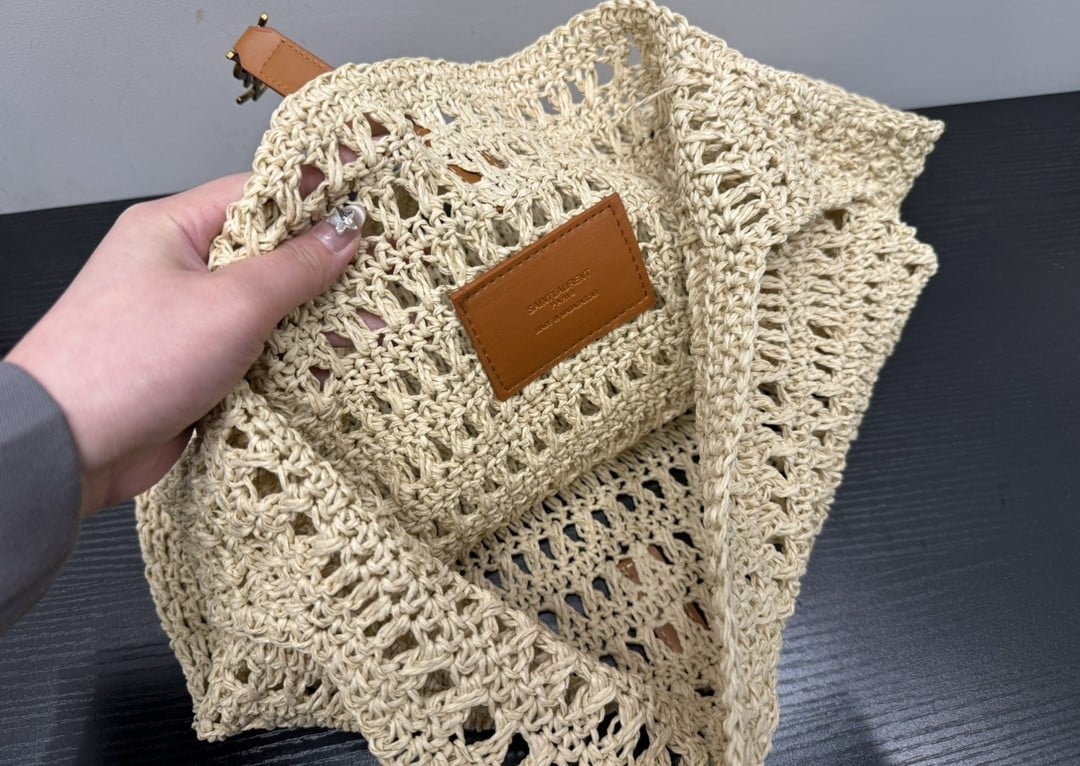 Saint Laurent Le 5 A 7 In Raffia Crochet And Smooth Leather Beige 32Cm 690941Gaaar2080