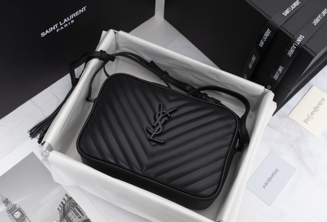 Saint Laurent Lou Camera Bag In Quilted Black Noir Leather 23Cm 612544Dv7081000