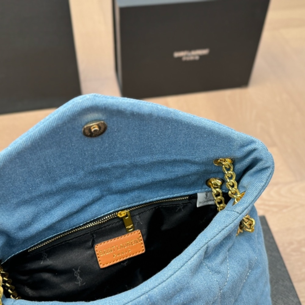 Saint Laurent Loulou Puffer Small Shoulder Bag In Blue Denim 28Cm