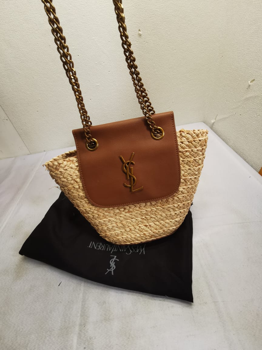 Saint Laurent Mini Manon In Raffia And Aged Vegetable Tanned Leather Naturel 23Cm 774269Gaaed9051