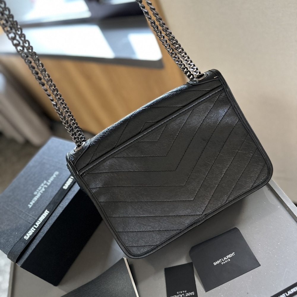 Saint Laurent Niki Medium In Vintage Leather Black 28Cm 6331580En041000